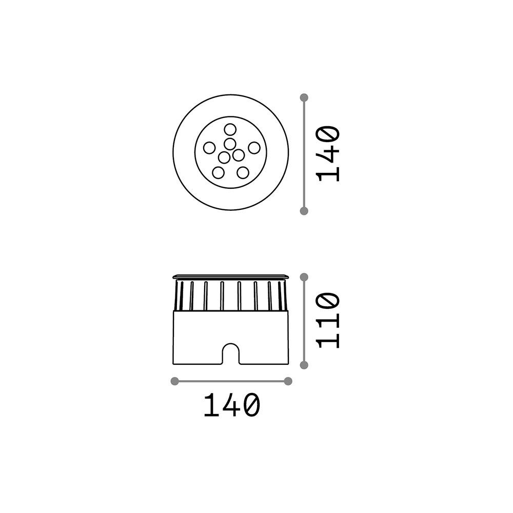 Faretto ad Incasso fisso da esterni in alluminio pressofuso con ghiera rotonda diam. 14 cm, adatto per installazione a terra e a pavimento.. Finitura in alluminio anodizzato con diffusore in vetro temprato extrachiaro. LED integrati 12 W raffreddati passivamente.