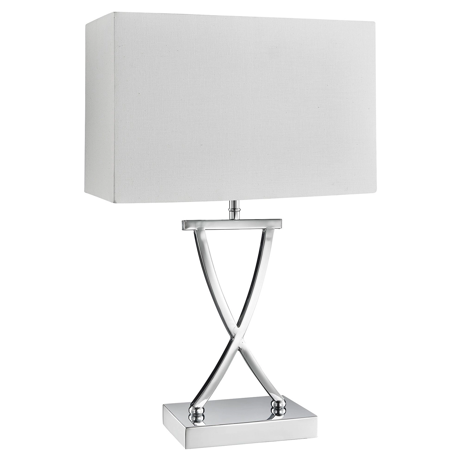 Lampada Da Scrivania Contemporanea Club Acciaio Cromo Tessuto Bianco 1 Luce E14