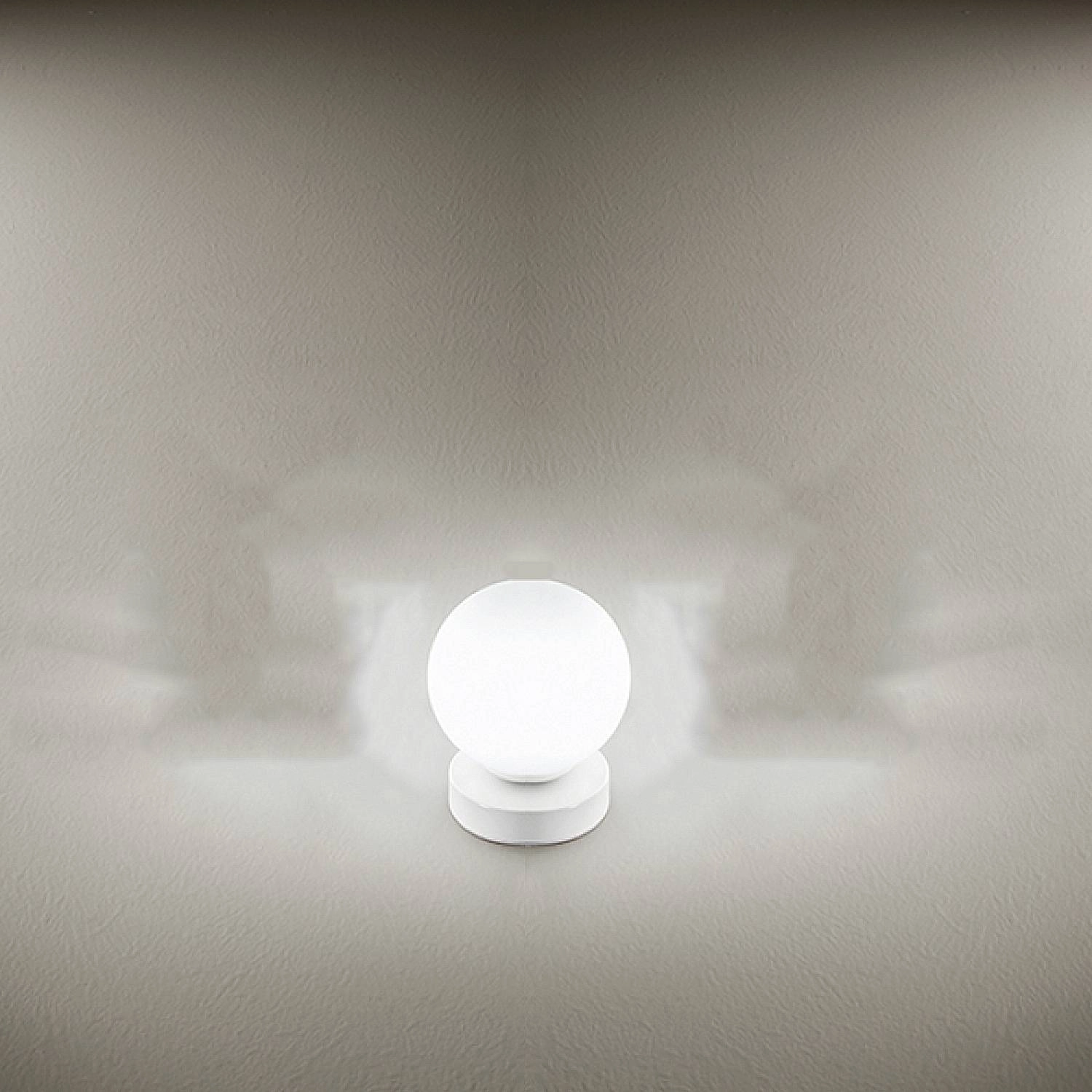 Collezione MagaLA LAMPADA SENZA TEMPO CHE INCANTALampada da tavolo con corpo in metallo bianco e diffusore in vetro acidato, è un'elegante lampada da parete con un d..