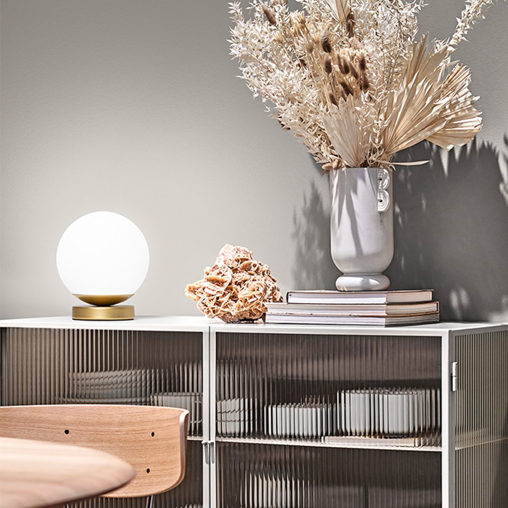 Lampada da tavolo con corpo in metallo oro e diffusore in vetro acidato, è un'elegante lampada da parete con un design moderno e raffinato. È adatta ad essere installata sia in ambienti domestici che in uffici o negozi. Grazie al suo stile semplice ed elegante, questa applique si adatta facilmente a qualsiasi tipo di arredamento e aggiunge un tocco di raffinatezza ed eleganza alle pareti della tua casa o del tuo ambiente di lavoro.