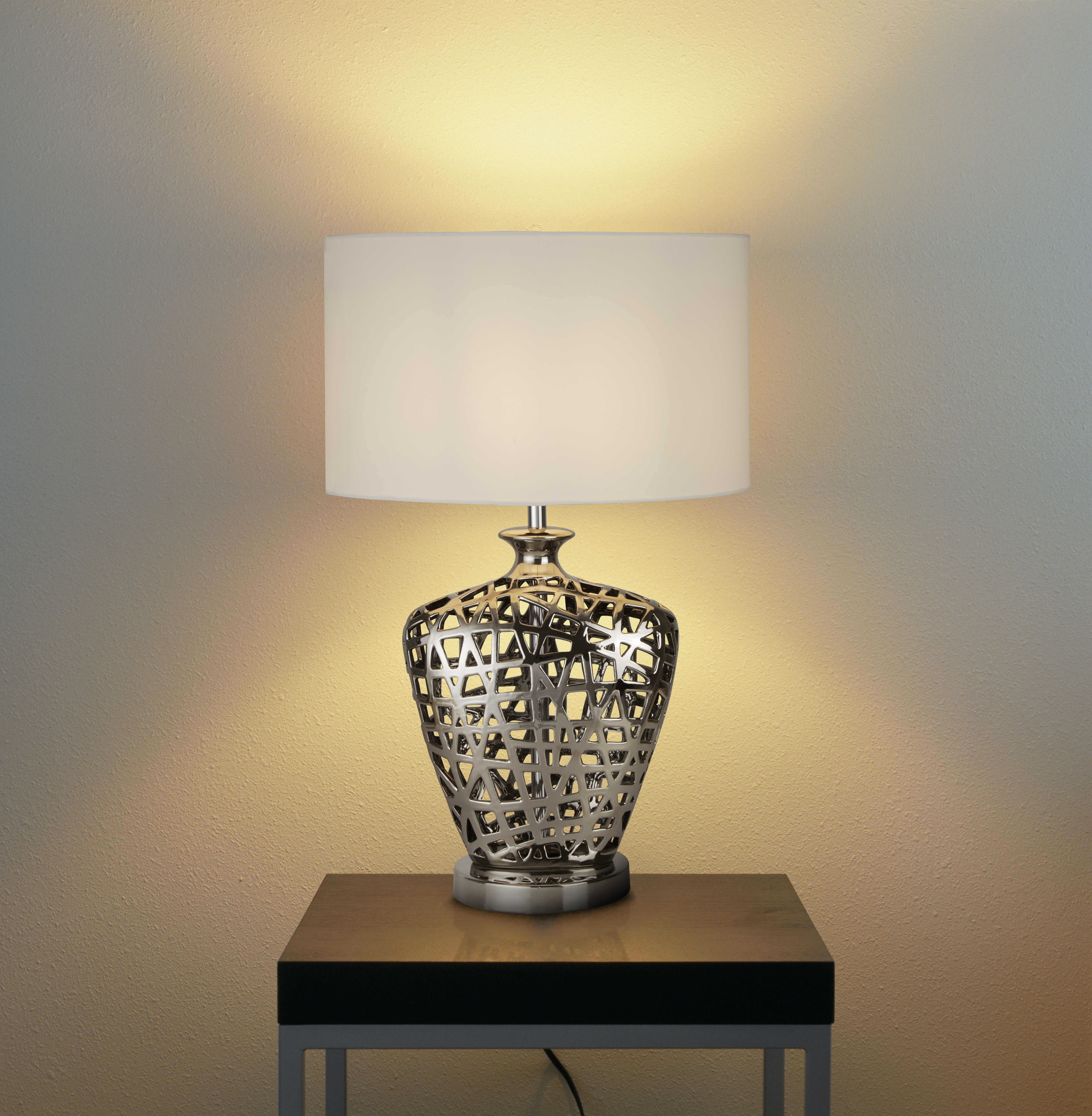 Lampada Da Scrivania Contemporanea Rete Metallo Cromo Tessuto Bianco 1 Luce E27