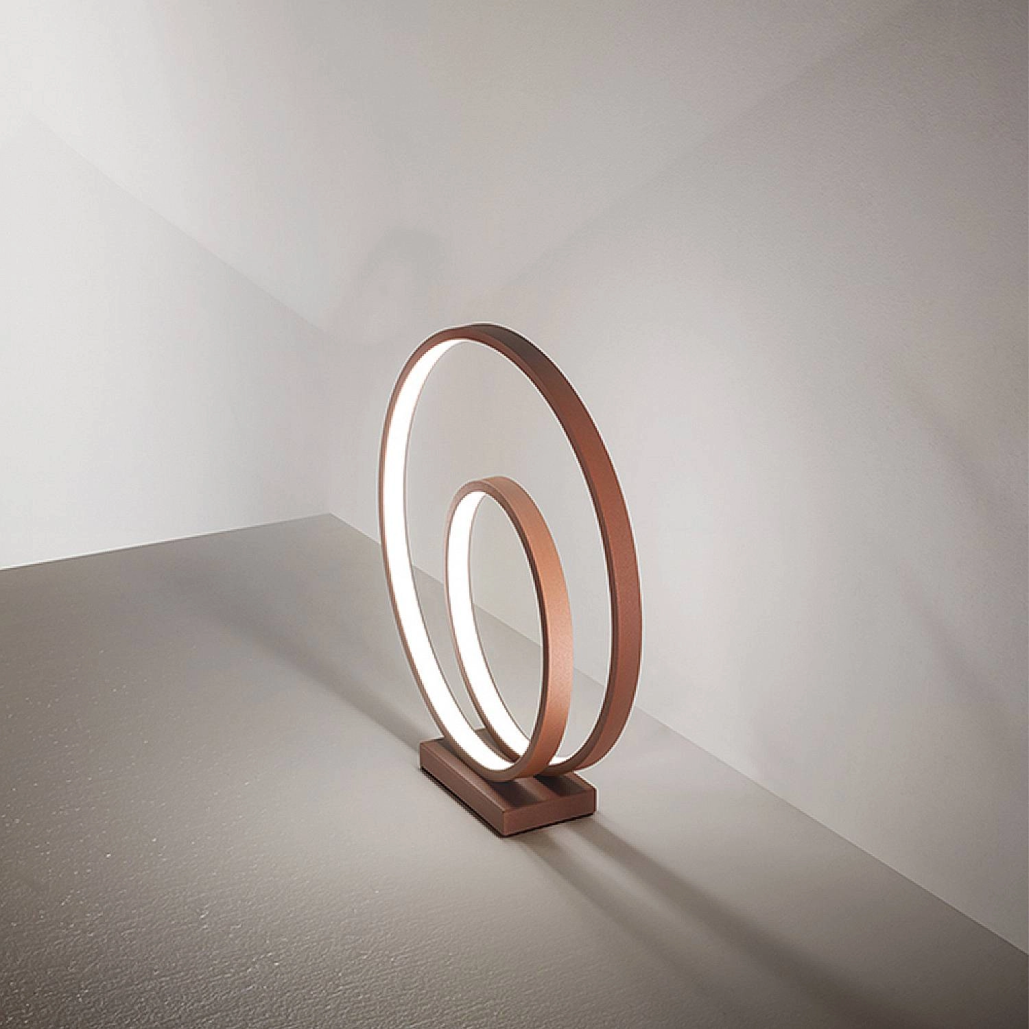 Lampada da scrivania elegante realizzata in metallo e alluminio verniciato di colore cannella. Il design moderno e minimalista di Ritmo si adatta perfettamente ad ogni tipo di arredamento, dallo stile più classico al più contemporaneo. Questo prodotto è ideale per essere utilizzato in soggiorni, camere da letto, corridoi o altre stanze della casa che richiedono un'illuminazione mirata ed efficace.