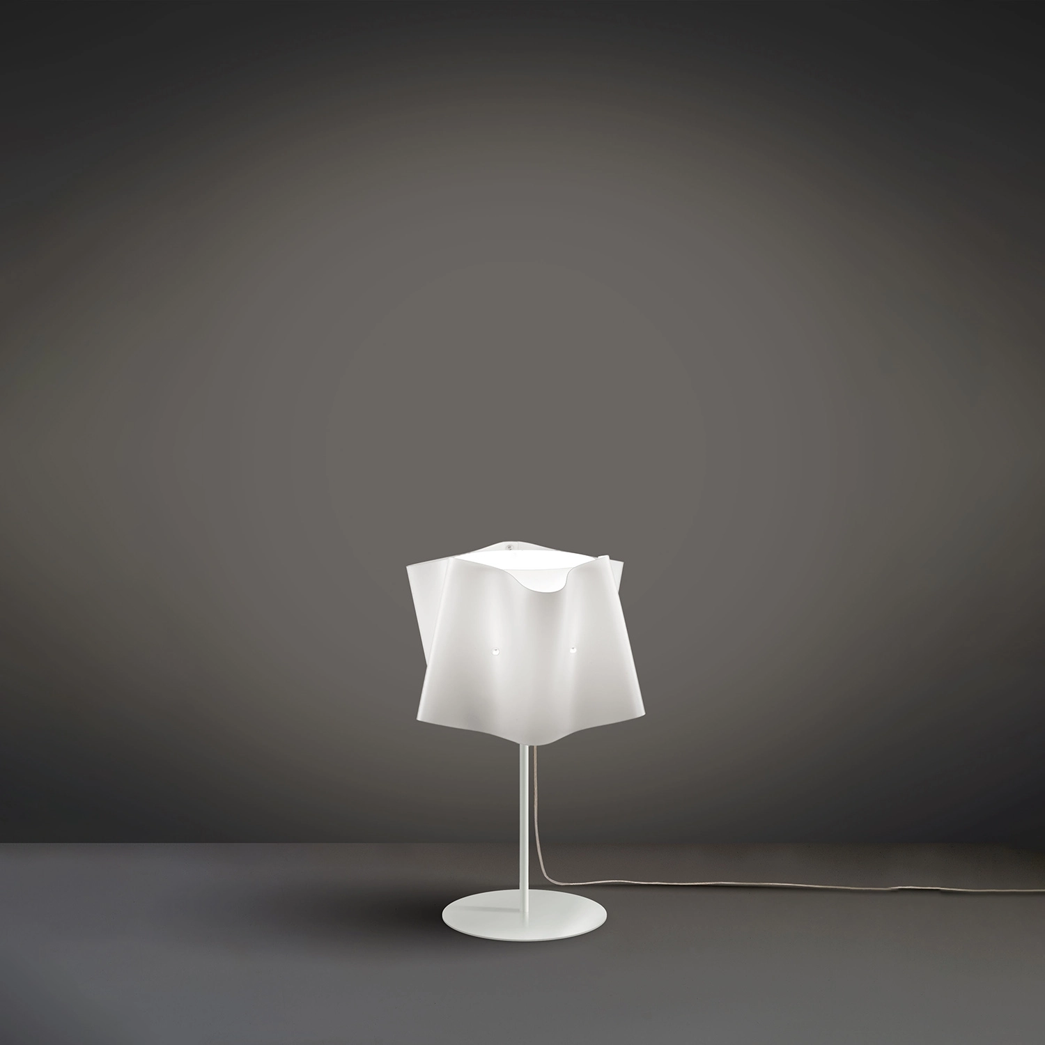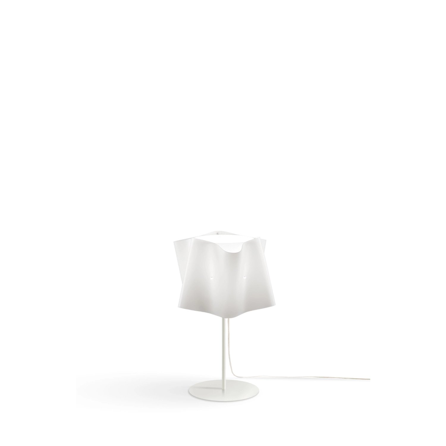 La lampada, disegnata dal design studio di MM Company.. La lampada è formata da un’anima cilindrica in Polilux, alla quale è stata ”abbottonata” una seconda superficie curva, che ricrea l’effetto morbido e leggero di un tessuto. Grazie alla continua ricerca, Linea Zero ha ideato uno speciale materiale diventato simbolo del proprio concetto di smart design. Il Polilux™ è un tecnopolimero eco-friendly che unisce all’estetica altre peculiarità essenziali, come l’efficienza, la durata nel tempo, la praticità e il rispetto per l’ambiente. L’azienda ha ritenuto doveroso creare un materiale contenente elementi di riciclo, tagliabile a freddo con emissioni di CO2 pari a zero e assemblabile a mano senza l’ausilio di macchinari. Inoltre, grazie all’ottimizzazione del taglio, lo scarto è ridotto al minimo e riciclato a sua volta. A fine vita, il Polilux è completamente riconvertibile e riciclabile, nel rispetto rigoroso delle normative e della sostenibilità ambientale. Questo esclusivo materiale dona ai prodotti una diffusione della luce pari a quella del vetro satinato, oltre ad aggiungere molti altri vantaggi: le collezioni Linea Zero sono infatti leggere, flessibili, infrangibili, antistatiche ed estremamente versatili. Ma non solo. Grazie alla sua speciale composizione, il Polilux è atossico, estremamente resistente alla luce ed agli agenti atmosferici, non ingiallisce nel tempo, vanta una eccellente resistenza ai solventi e a tutti i prodotti per la pulizia domestica.