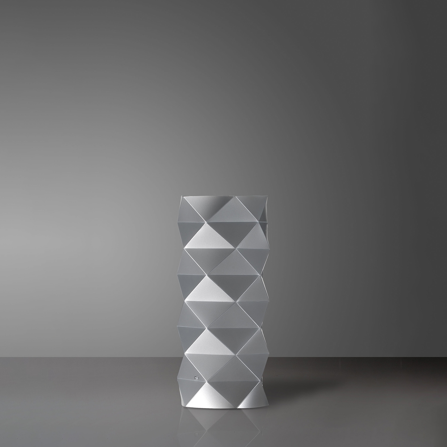 Per questa lampada il designer Enea Ferrari trae ispirazione dall’arte, dai mosaici pavimentali geometrici della Basilica di San Marco e di San Vitale.. Le forme triangolari, incise della Prisma, giocano con il concetto di luci e ombre per ricreare l’effetto a mosaico. Grazie alla continua ricerca, Linea Zero ha ideato uno speciale materiale diventato simbolo del proprio concetto di smart design. Il Polilux™ è un tecnopolimero eco-friendly che unisce all’estetica altre peculiarità essenziali, come l’efficienza, la durata nel tempo, la praticità e il rispetto per l’ambiente. L’azienda ha ritenuto doveroso creare un materiale contenente elementi di riciclo, tagliabile a freddo con emissioni di CO2 pari a zero e assemblabile a mano senza l’ausilio di macchinari. Inoltre, grazie all’ottimizzazione del taglio, lo scarto è ridotto al minimo e riciclato a sua volta. A fine vita, il Polilux è completamente riconvertibile e riciclabile, nel rispetto rigoroso delle normative e della sostenibilità ambientale. Questo esclusivo materiale dona ai prodotti una diffusione della luce pari a quella del vetro satinato, oltre ad aggiungere molti altri vantaggi: le collezioni Linea Zero sono infatti leggere, flessibili, infrangibili, antistatiche ed estremamente versatili. Ma non solo. Grazie alla sua speciale composizione, il Polilux è atossico, estremamente resistente alla luce ed agli agenti atmosferici, non ingiallisce nel tempo, vanta una eccellente resistenza ai solventi e a tutti i prodotti per la pulizia domestica.
