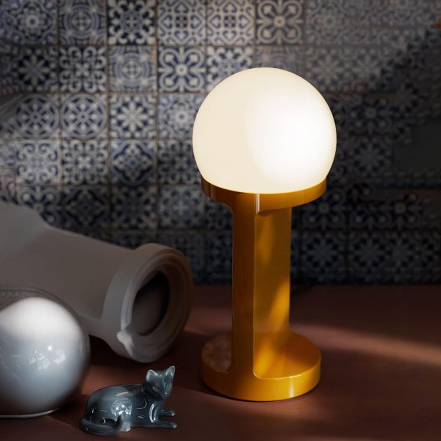 Lampada Da Tavolo Classica Habea Ceramica Blu Robot 1 Luce E14