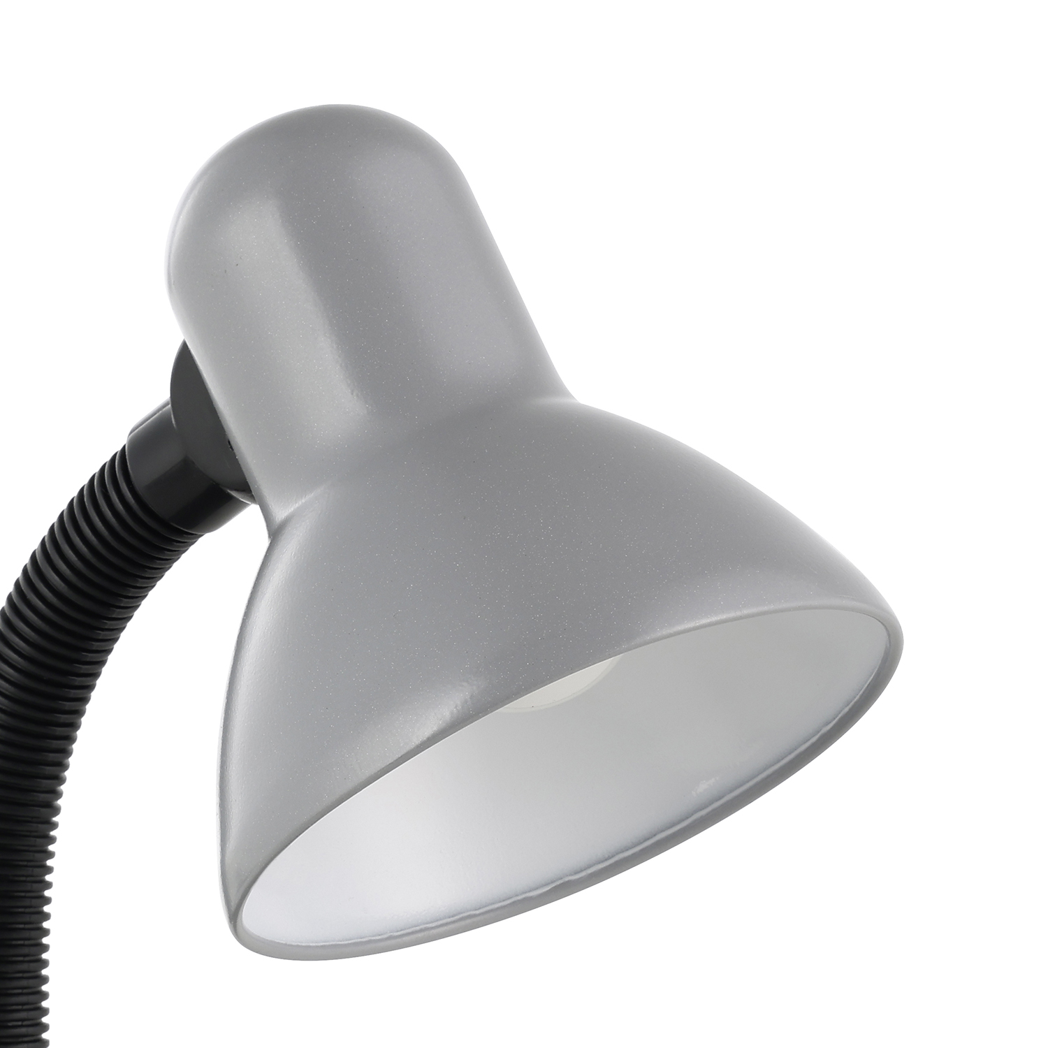 La lampada da scrivania BASIC è realizzata in metallo color argento e composta da un collo mobile nero in plastica.. Grazie all’interno bianco del paralume e al collo flessibile si potrà illuminare in un batter d’occhio la postazione di lavoro in modo ottimale e mirato. È possibile accendere e spegnere la lampada comodamente tramite l’interruttore a levetta presente alla base della lampada. Questa lampada da scrivania, con il suo design classico, offre un’illuminazione pratica alla postazione di lavoro, che sia in ufficio o lavorando dalla scrivania di casa. La lampadina non è inclusa nella consegna. Per questa lampada da tavolo è adatta qualsiasi lampadina con attacco E27.