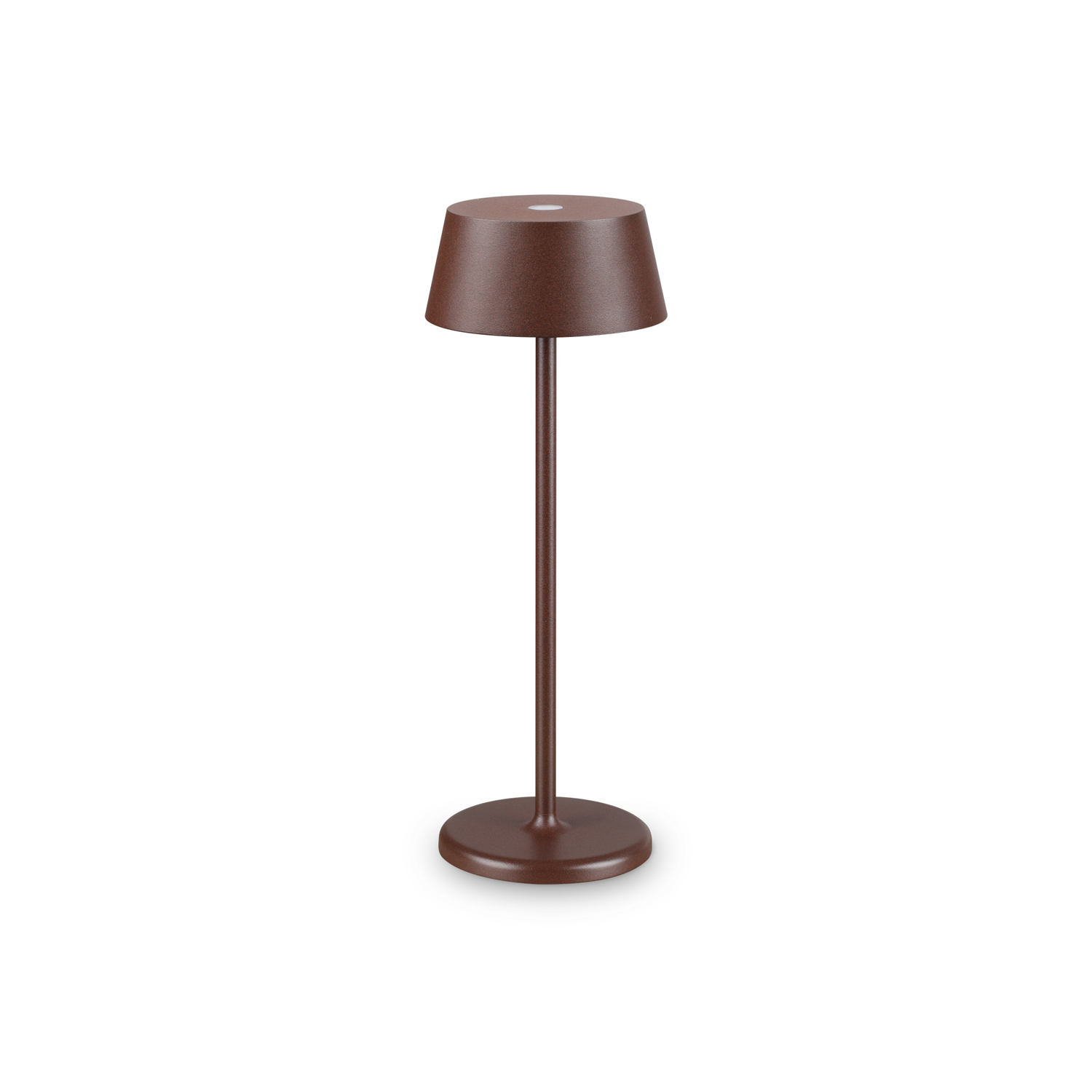 Lampada da tavolo Contemporanea Pure Metallo coffee Led Integrato 1,5W 3000K IP54 A++ h.32 D.11,5 L. Lampadina inclusa. Base, stelo e paralume in metallo verniciato opaco. Diffusore in acrilico. Batteria ricaricabile e interruttore touch integrato. Finiture: bianco, coffee, nero. Tempo di ricarica della batteria 6 ore.