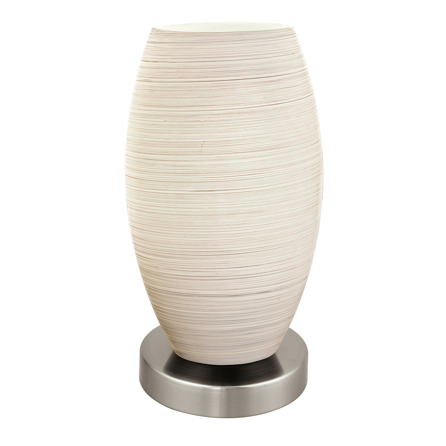 La lampada da tavolo BATISTA 3 è composta da una base rotonda in metallo in nichel opaco e da un paralume rotondo in vetro bianco.. È possibile accendere e spegnere la lampada comodamente tramite un interruttore presente sul cavo. Questa lampada, con il suo semplice design, si armonizza perfettamente in vari stili di arredo offrendo un’illuminazione confortevole nel soggiorno, sul davanzale di una finestra, sul comodino o anche su un tavolino. La lampadina non è inclusa nella consegna. Per la lampada è adatta qualsiasi lampadina con attacco E27.