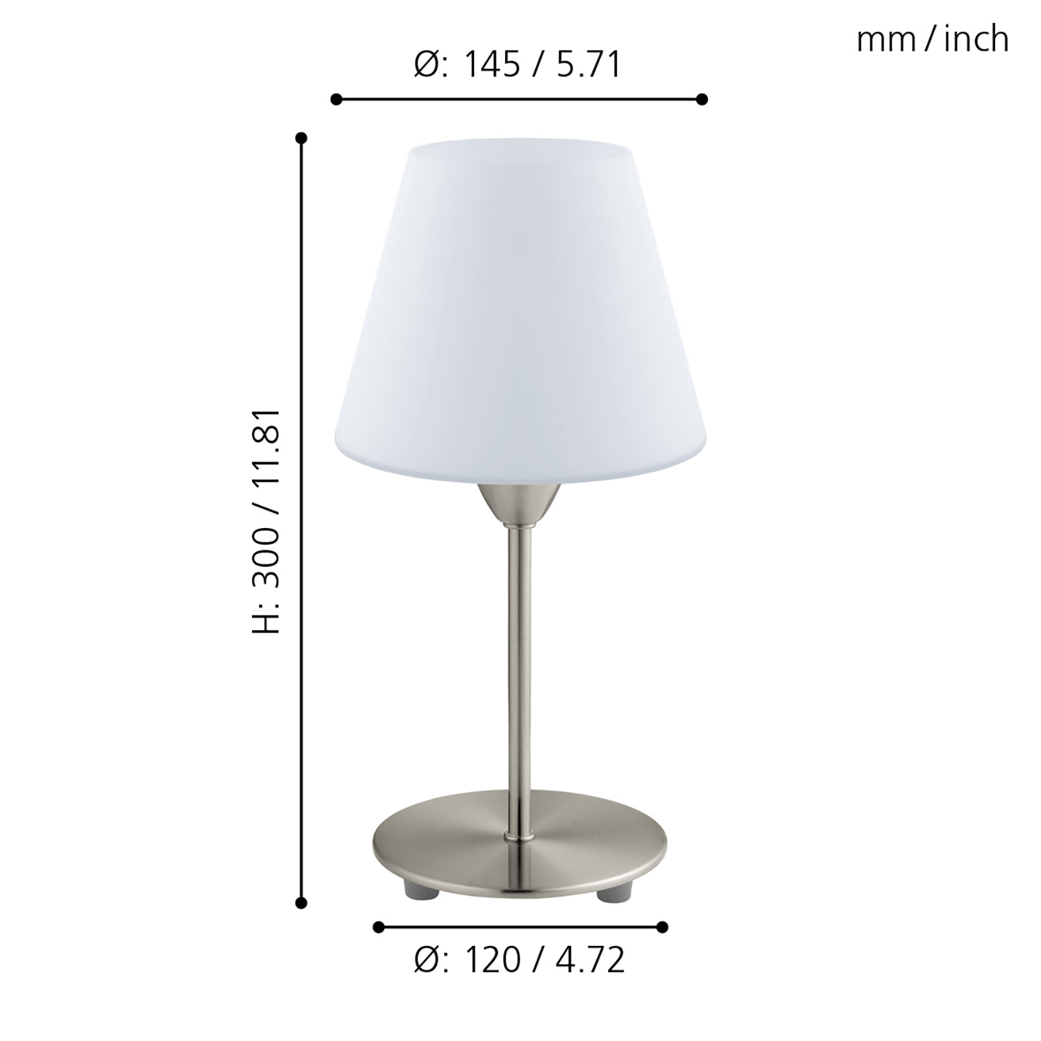 La lampada da tavolo DAMASCO 1 è composta da una base in metallo nichel opaco e da un paralume in vetro color latte opaco bianco a forma di cono.. Questa lampada da tavolo, grazie al suo design semplice, si armonizza con arredamenti minimalisti e può essere accesa e spenta comodamente tramite un interruttore presente sul cavo. Offre un’illuminazione moderna in qualsiasi ambiente, che sia sul comodino della camera da letto, nel soggiorno o nel corridoio. La lampadina non è inclusa nella consegna. Per la lampada è adatta qualsiasi lampadina con attacco E14.