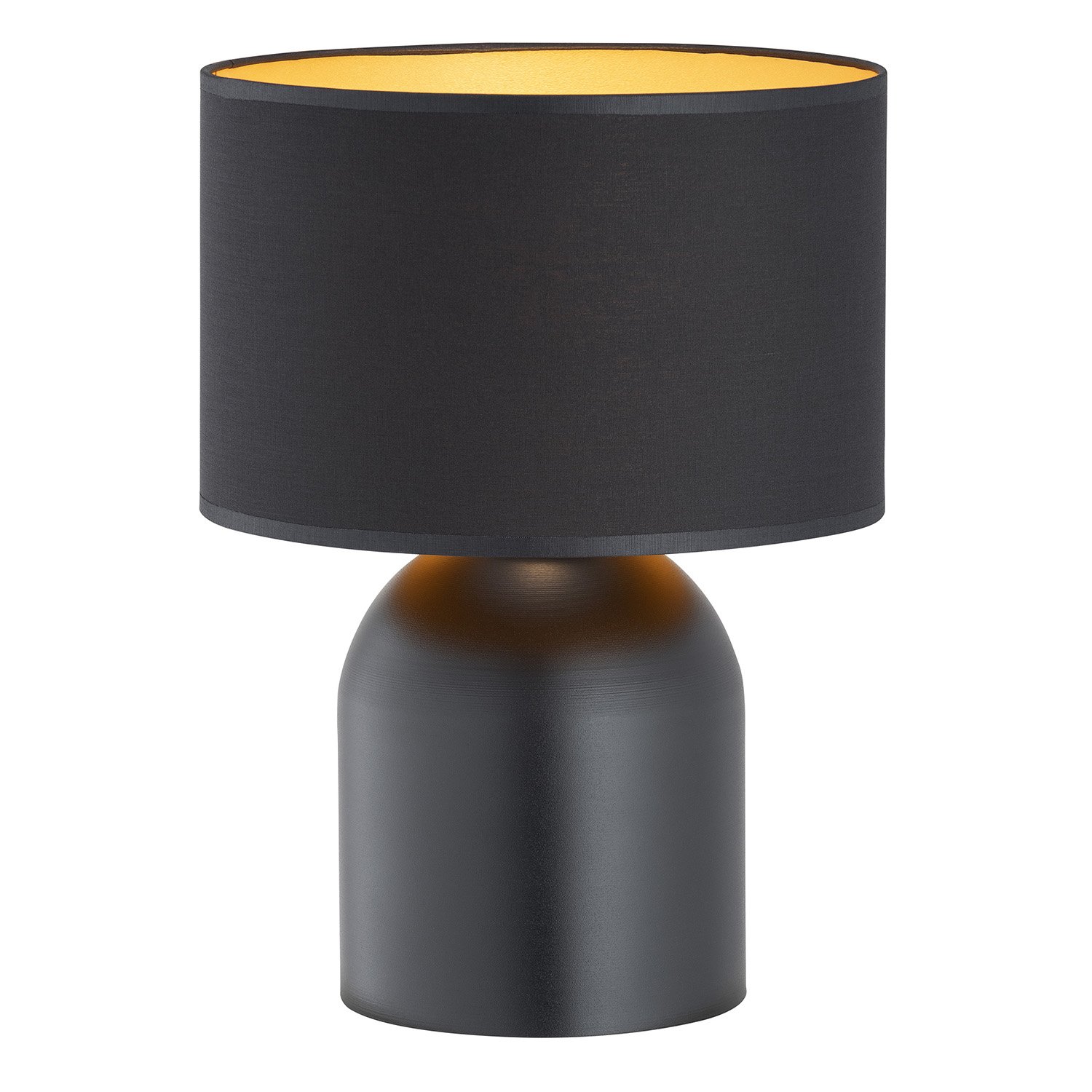 Collezione EnlilATMOSFERE CREATE CON CURA, NON PRODOTTE IN CATENALampada da tavolo in stile minimal nordico a 1 luce con base in acciaio nero e paralume in tessuto n..