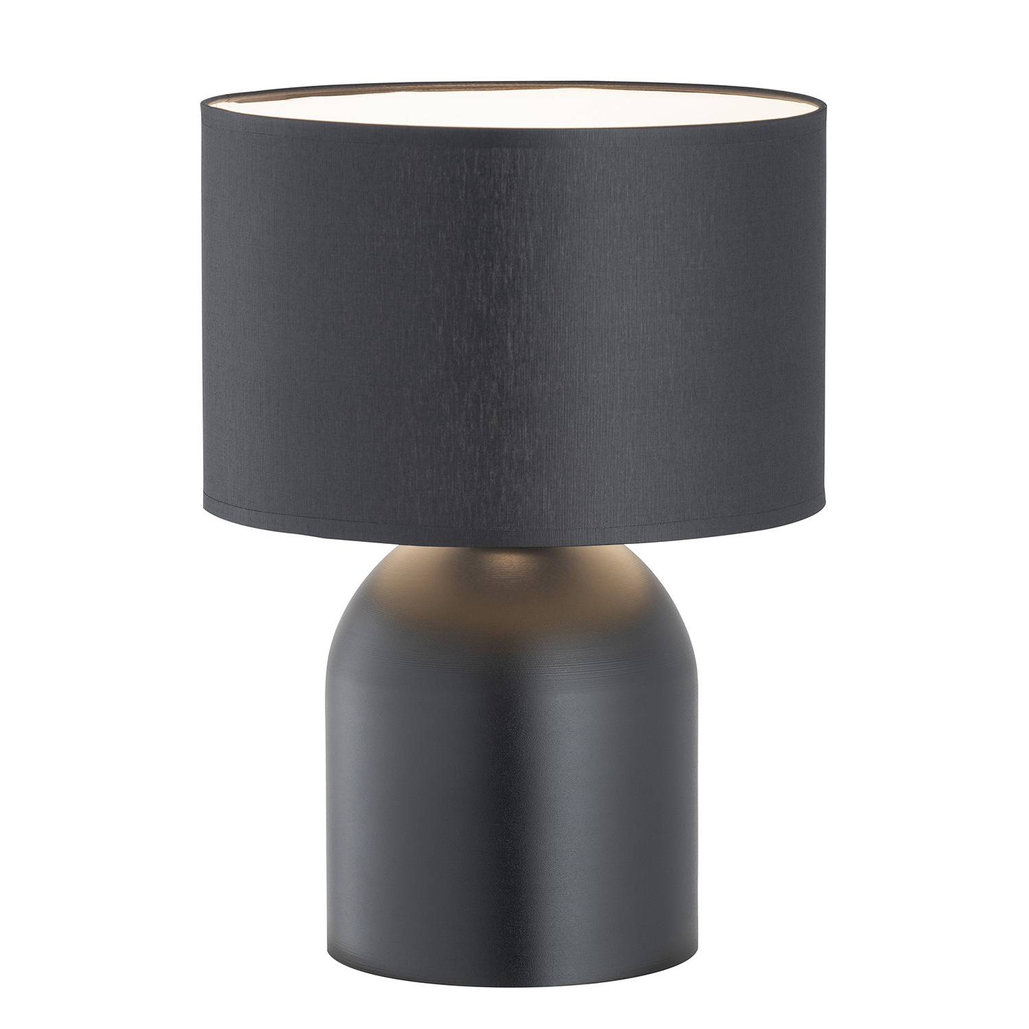 Collezione EnlilATMOSFERE CREATE CON CURA, NON PRODOTTE IN CATENALampada da tavolo in stile minimal nordico a 1 luce con base in acciaio nero e paralume in tessuto r..
