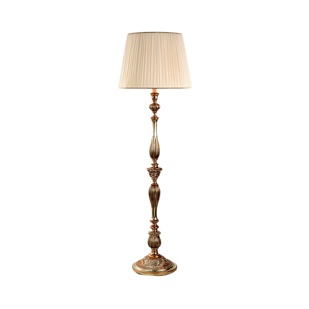 Lampada da terra realizzata a mano dai nostri mastri artigiani seguendo le più antiche tradizioni del legno. Struttura in legno intarsiato color argento mecca.. Monta 1 lampadina E27 (non inclusa) . Adatto ad un arredamento classico e raffinato