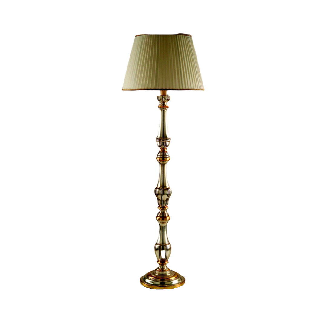 Lampada da terra realizzata a mano dai nostri mastri artigiani seguendo le più antiche tradizioni del legno. Struttura in legno intarsiato color argento mecca.. Monta 1 lampadina E27 (non inclusa) . Adatto ad un arredamento classico e raffinato