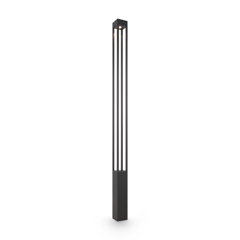 Serie di lampioni di varie altezze. Corpo in metallo, colore – grafite.. Elevato grado di protezione IP65, protezione dalla corrosione e dagli sbalzi di temperatura. Sorgente luminosa a LED, temperatura di colore 3000K. Geometria rigorosa nel design.