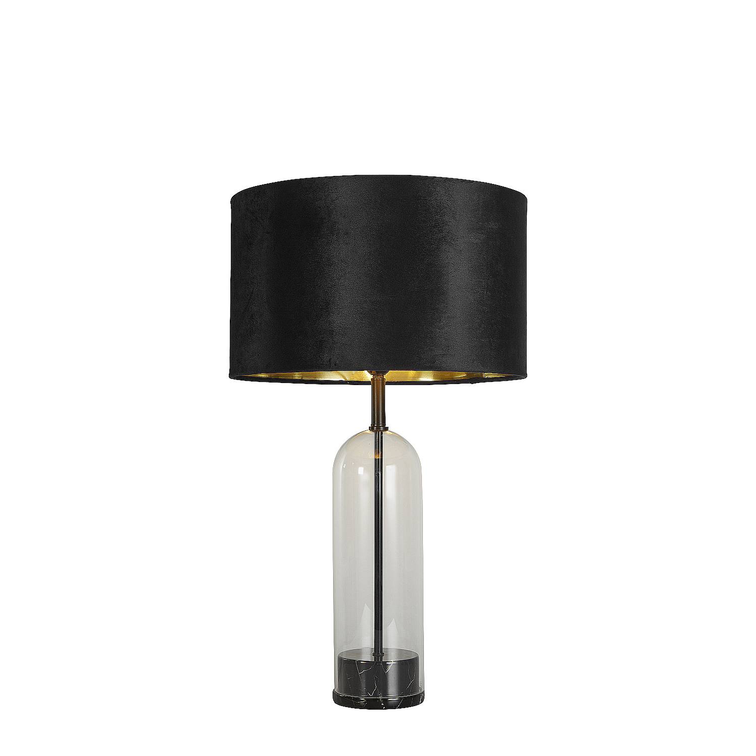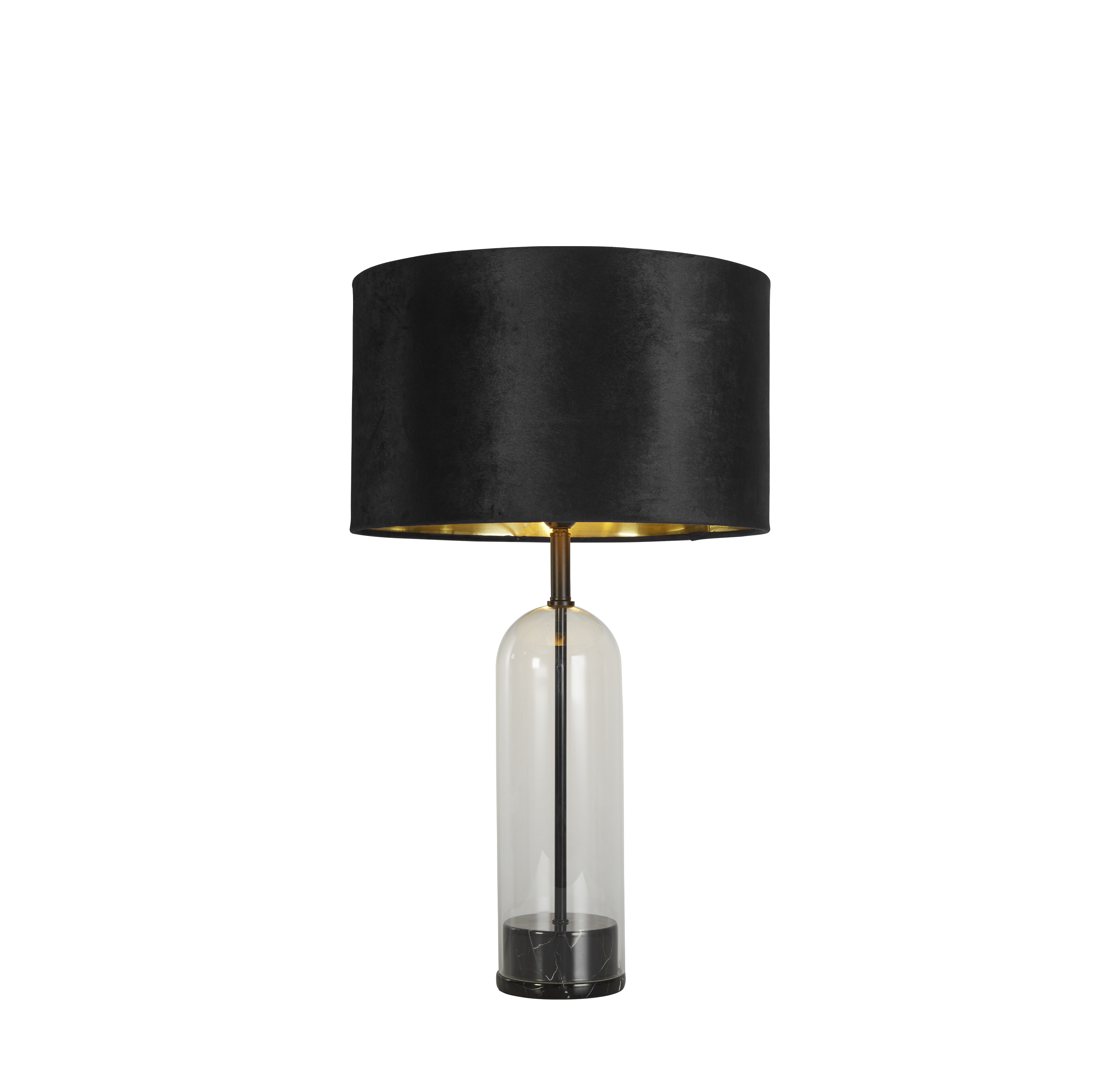Collezione OxfordLUCE ARMONIOSADotata di un paralume in velluto nero con interno dorato, la lampada da tavolo Oxford presenta un'armoniosa combinazione di vetro, met..