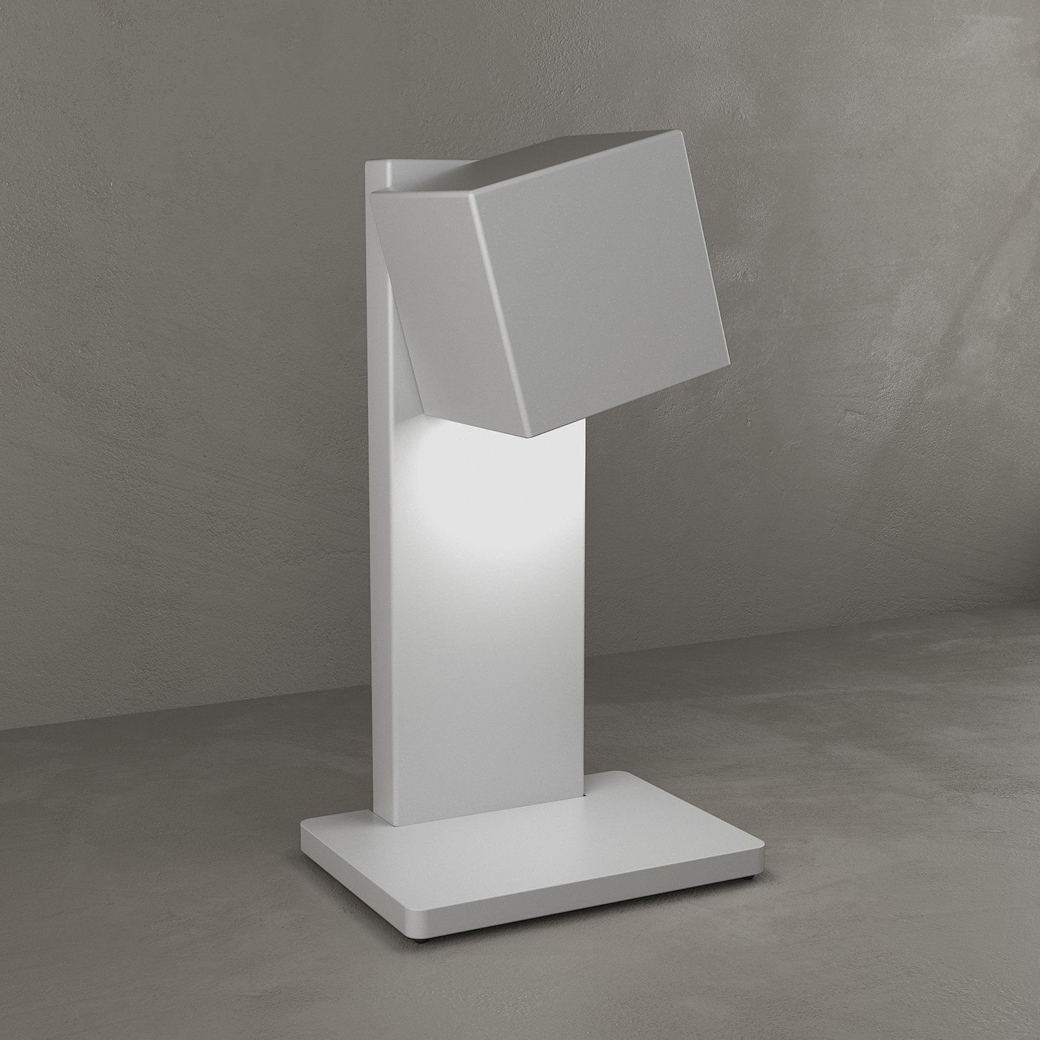 Collezione AREAIL FASCINO MINIMALISTA DELL'ILLUMINAZIONE SENZA LAMPADINELampada di appoggio realizzata con lastre quadrate in metallo verniciato in finitura bianca....