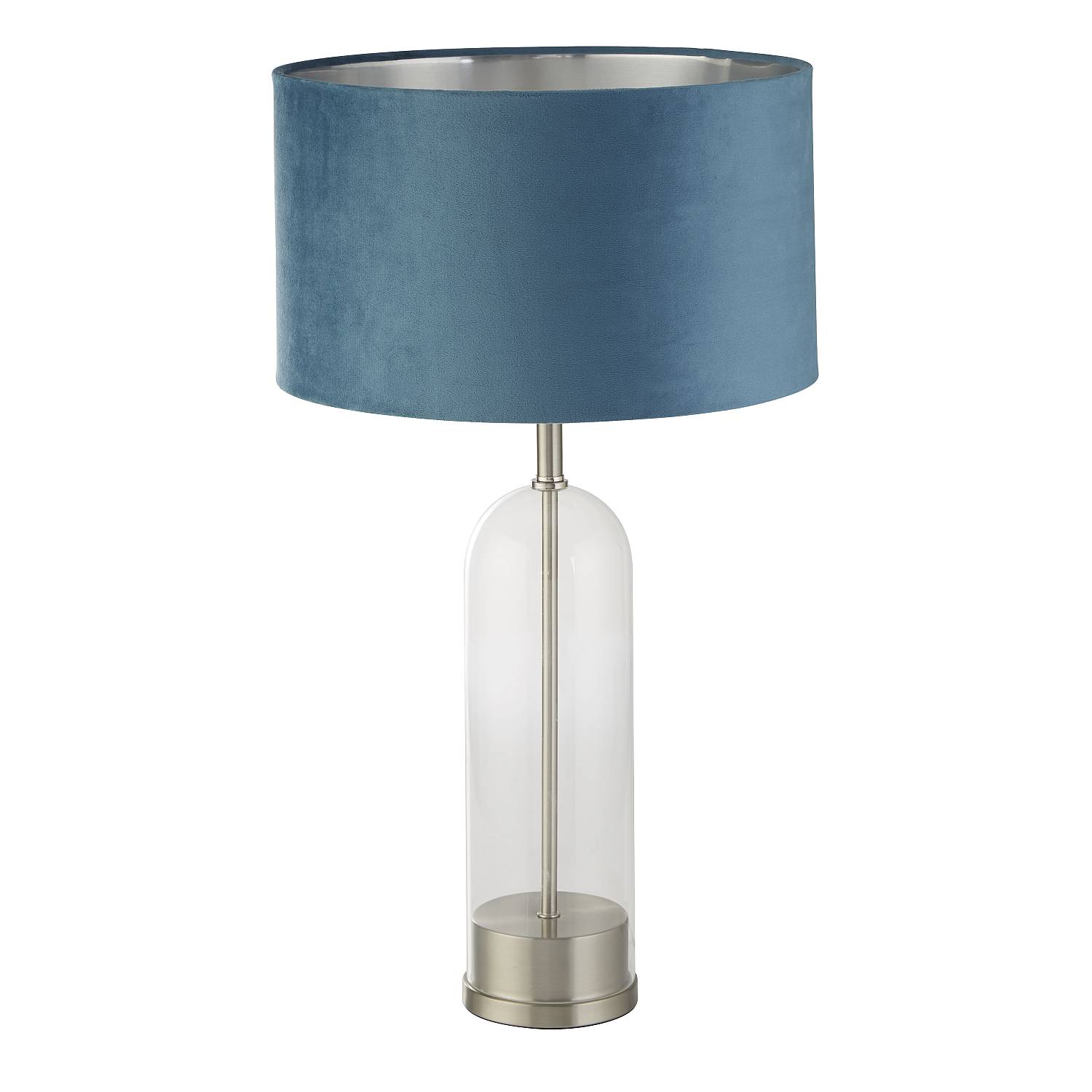 La lampada da tavolo Oxford combina perfettamente il design classico con lo stile contemporaneo. Con un'elegante base realizzata in metallo nichel satinato e vetro, questa lampada da tavolo unisce resistenza e raffinatezza. Questa lampada da tavolo presenta un sorprendente paralume in velluto verde acqua con un interno in argento metallizzato per una consistenza morbida e un modo per aggiungere un tocco di colore a qualsiasi zona giorno o camera da letto. La forma a tamburo del paralume aggiunge equilibrio, completando interni sia tradizionali che moderni.