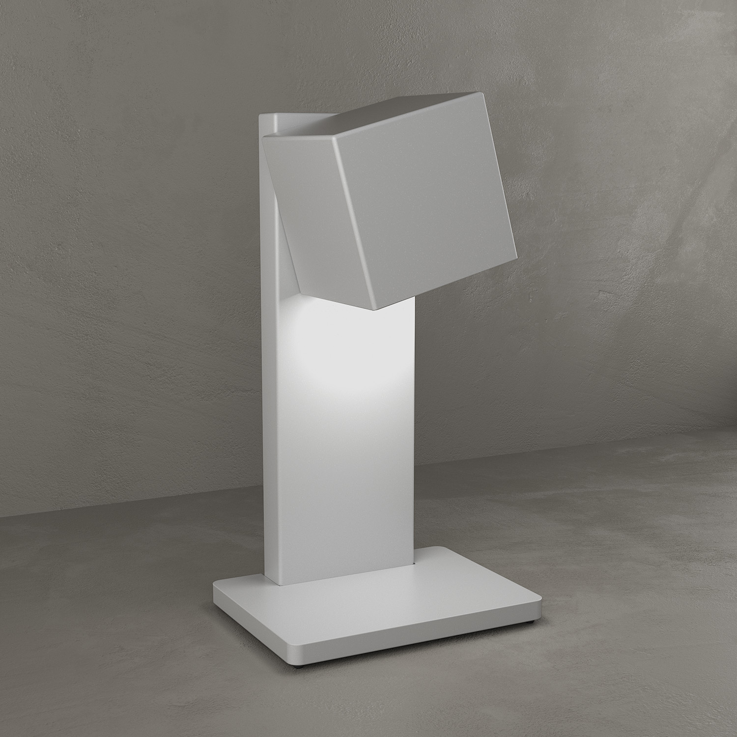 Collezione PLATEUN'ILLUMINAZIONE SENZA LIMITI, UN DESIGN SENZA COMPROMESSILampada da appoggio 1 luce orientabile di finitura bianca, realizzata con lastre quadrate d..