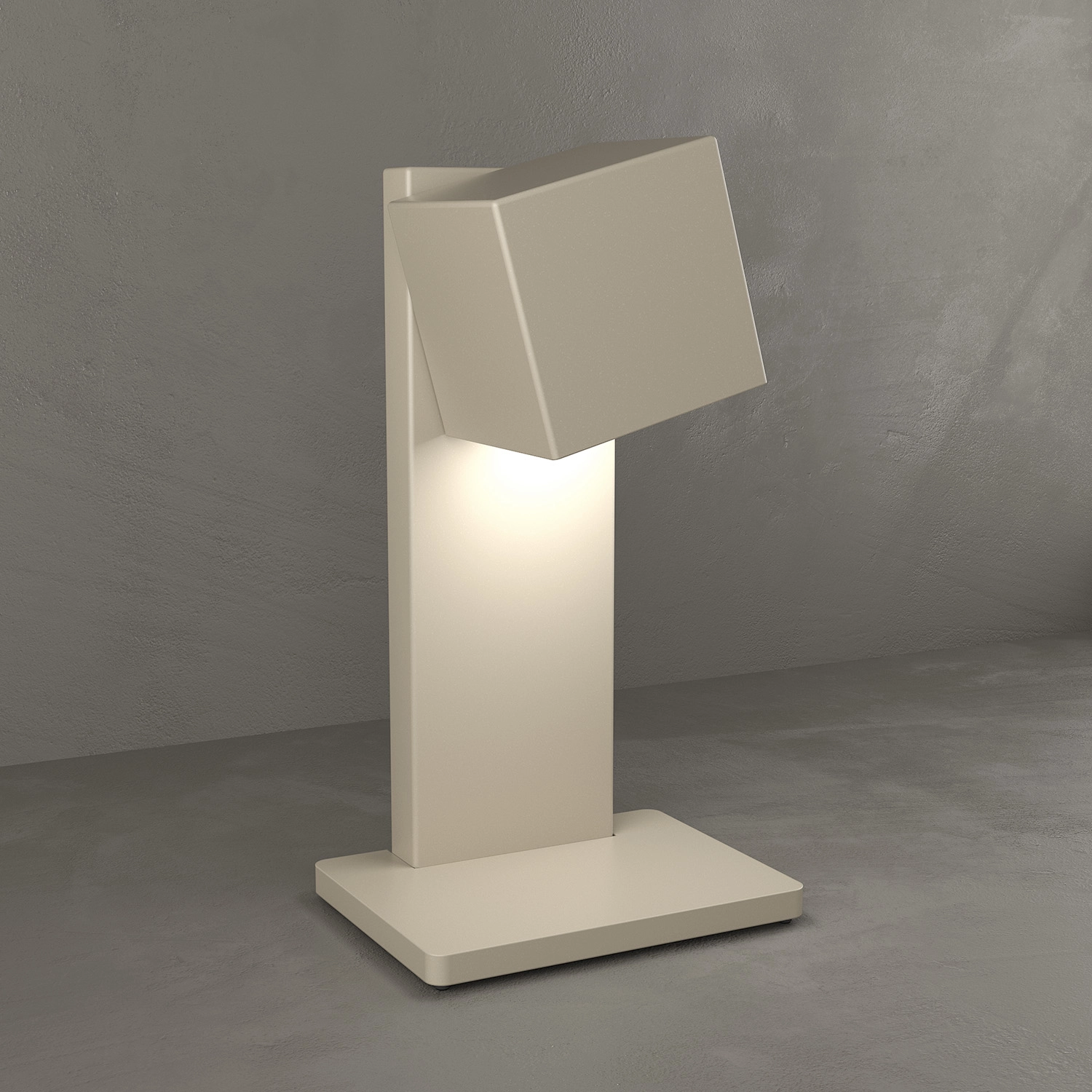 Collezione PLATEUN'ILLUMINAZIONE SENZA LIMITI, UN DESIGN SENZA COMPROMESSILampada da appoggio 1 luce orientabile di finitura sabbia, realizzata con lastre quadrate d..