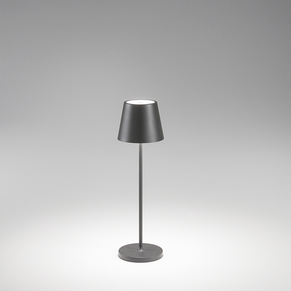 Lampada da tavolo ricaricabile a batterie in alluminio pressofuso verniciato a polvere per uso interno/esterno. Diffusore in acrilico satinato. Testina “touch” che permette l’accensione e la regolazione dell’intensità luminosa. Liberi dalle prese, dai cavi, da posizioni statiche, fisse e predefinite. Se tutto scorre anche la luce deve poter viaggiare nello spazio. La selezione di lampade ricaricabili proposte da Perenz sono un vero e proprio concept di luce: un naturale gesto di accensione e tutto si illumina, in un secondo, lontano dalla corrente, all’interno o all’esterno. La luce adesso si muove ed è immediatamente disponibile laddove c’è desiderio di illuminare una stanza, una veranda, un giardino, qualsiasi angolo del mondo. E inoltre: arreda in modo dinamico creando ad ogni accensione un nuovo ambiente e una nuova emozione. Grazie alla loro portabilità e inimitabile leggerezza questi oggetti di design creano nuove atmosfere in pochi secondi e fanno da cornice a momenti di vita, rendendoli indimenticabili. Diverse forme, colori e texture per diverse qualità di luce. Ogni proposta ha la sua personalità inconfondibile capace di adattarsi a diversi stili: classico, moderno, contemporaneo, minimalista. I dispositivi touch, la possibilità di variare l’intensità luminosa, l’opzione di diverse temperature di luce rendono ogni proposta magica e irresistibile. Una volta accesa, impossibile separarsi da una lampada ricaricabile che può essere portata ovunque anche in viaggio o in vacanza.