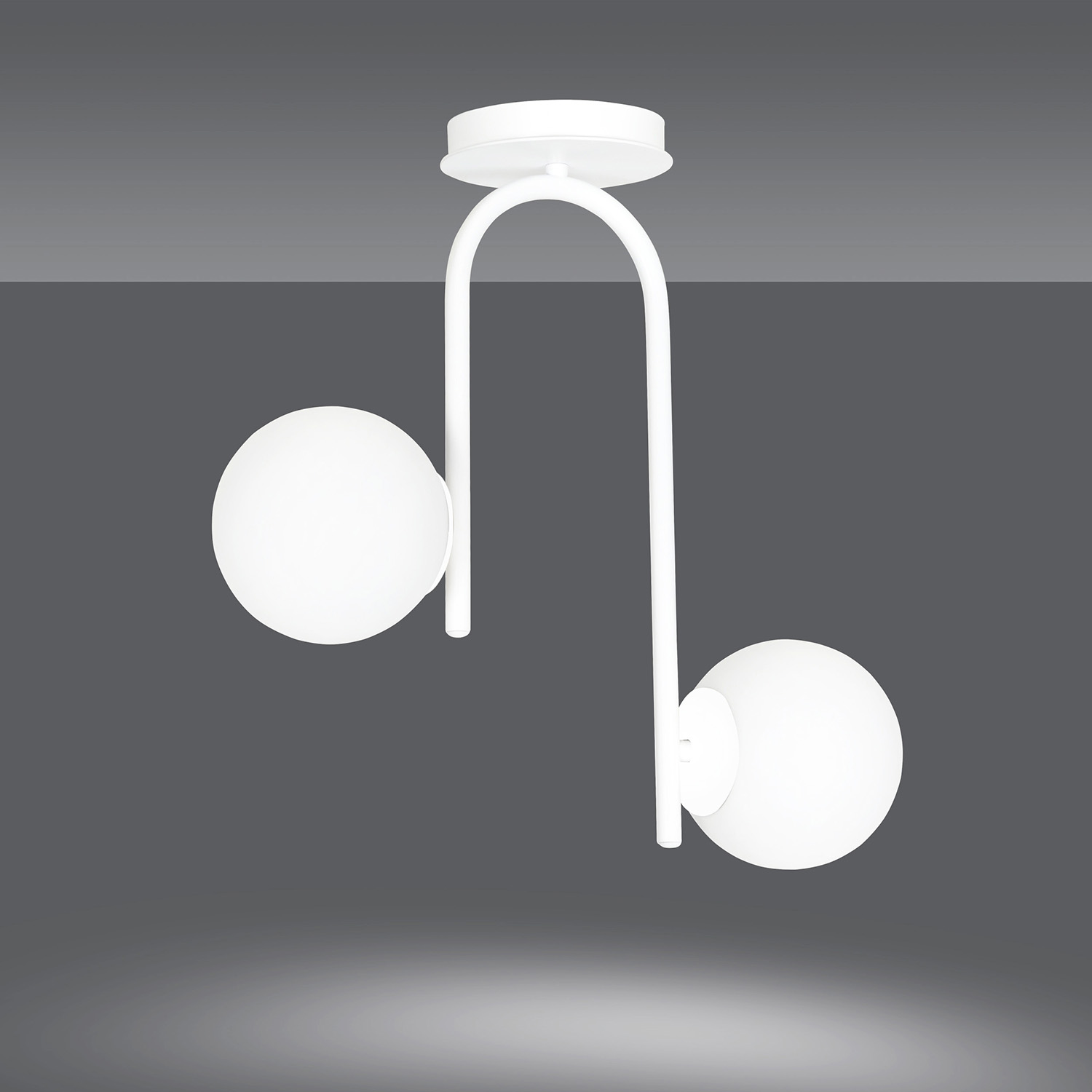 Lampadario moderno 2 luci con corpo in metallo bianco con braccio curvo e 2 paralumi in vetro opalino di forma sferica. Sembrano più impressionanti sospesi su un tavolo o un'isola, donando alla stanza un'atmosfera unica. La delicata tonalità lattiginosa aggiunge eleganza e leggerezza alla serie KALF. Il design minimalista illuminerà perfettamente anche gli spazi più ampi e si adatterà perfettamente alla maggior parte delle sistemazioni domestiche.