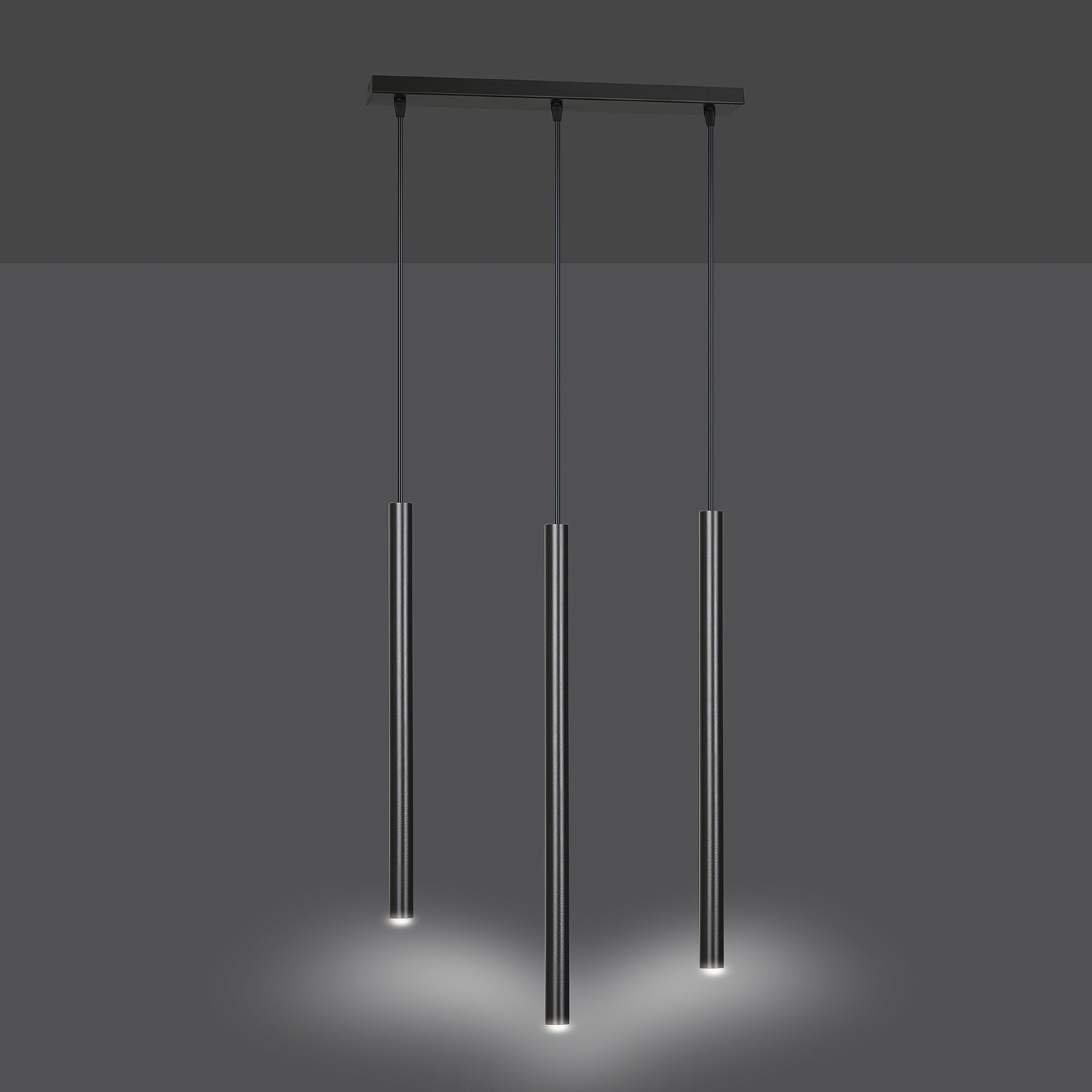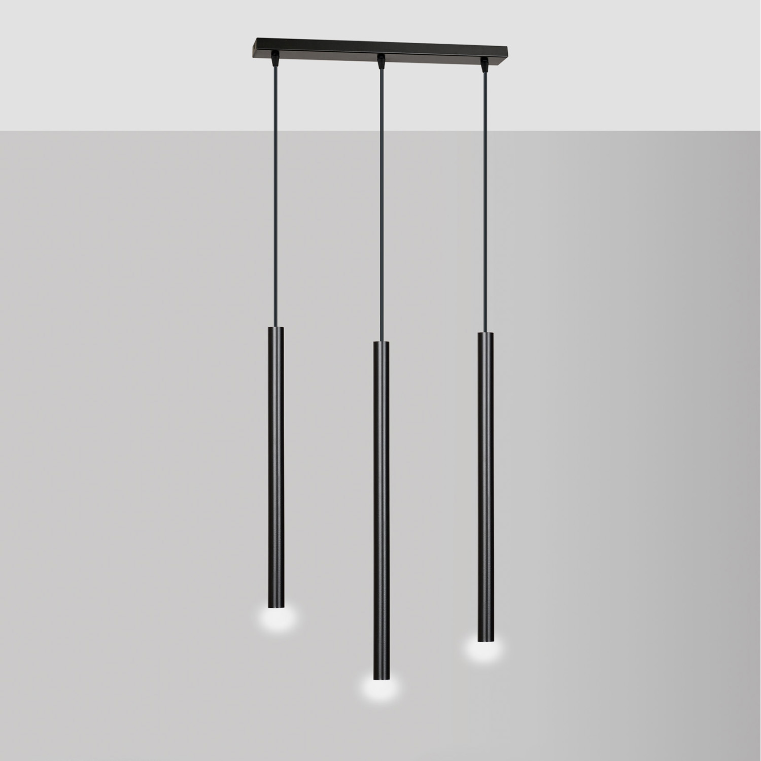 Lampadario contemporaneo 3 luci realizzato con base rettangolare in metallo di colore nero e 3 sottili paralumi in metallo con attacco G9 di forma cilindrica. Il design complessivo appare leggero e incredibilmente originale. La serie Selter è un'ottima scelta per chi cerca soluzioni non convenzionali e uno stile trendy e distintivo.