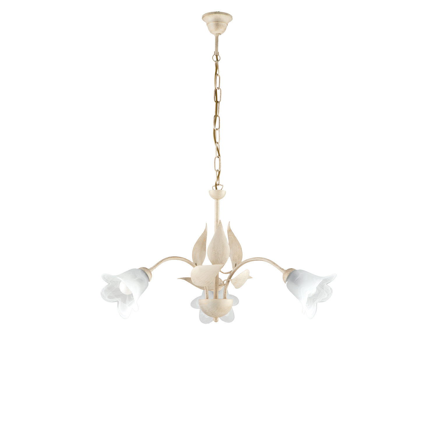 Lampadario 3 Luci Olga Ferro Battuto E Vetro Avorio E Oro