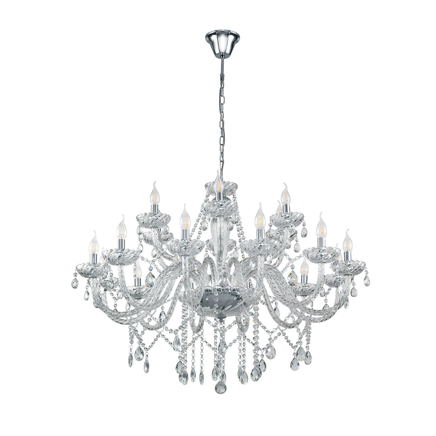 Lampadario A Sospensione Classico Basilano Acciaio Cromo Vetro 18 Luci E14