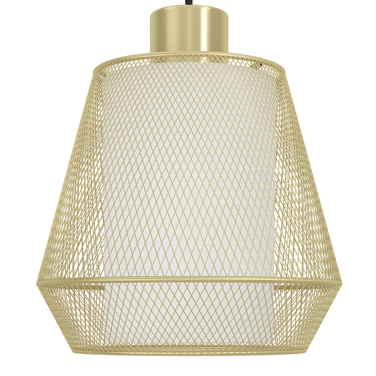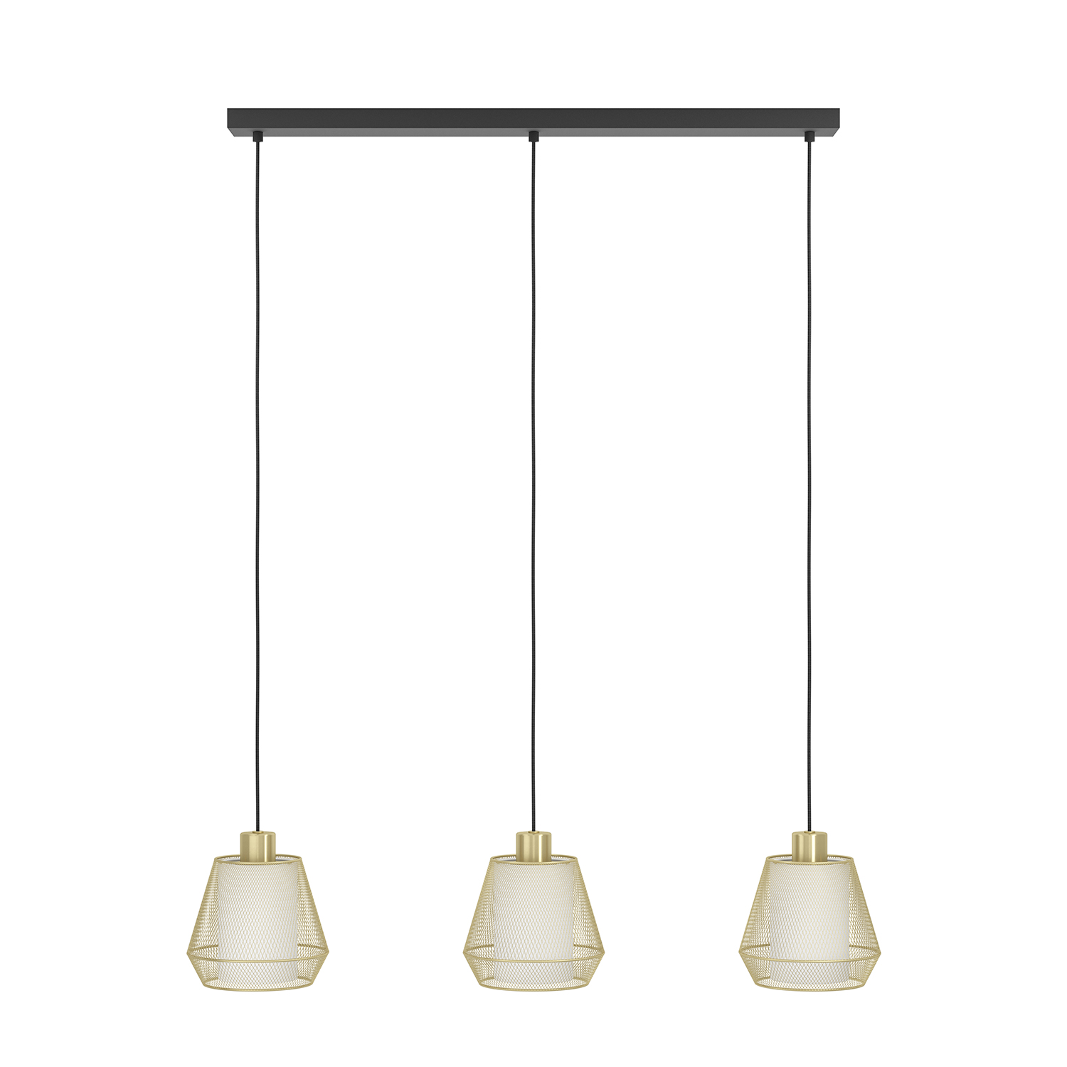 CIUDADELA - Il lampadario a sospensione monta portalampada E27 3X40W non inclusa con Struttura in acciaio / finitura nero. Diffusore in acciaio, tessuto / finitura ottone spazzolato, bianco; L880 x 180 H1100,