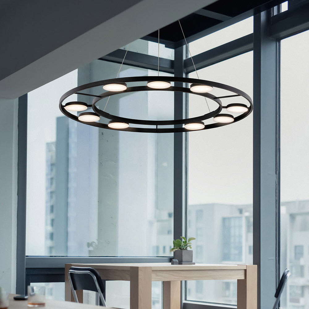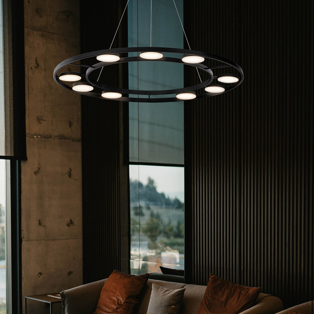 Lampadario A Sospensione Moderno Fad Metallo Nero Acrilico 9 Luci Led 63W