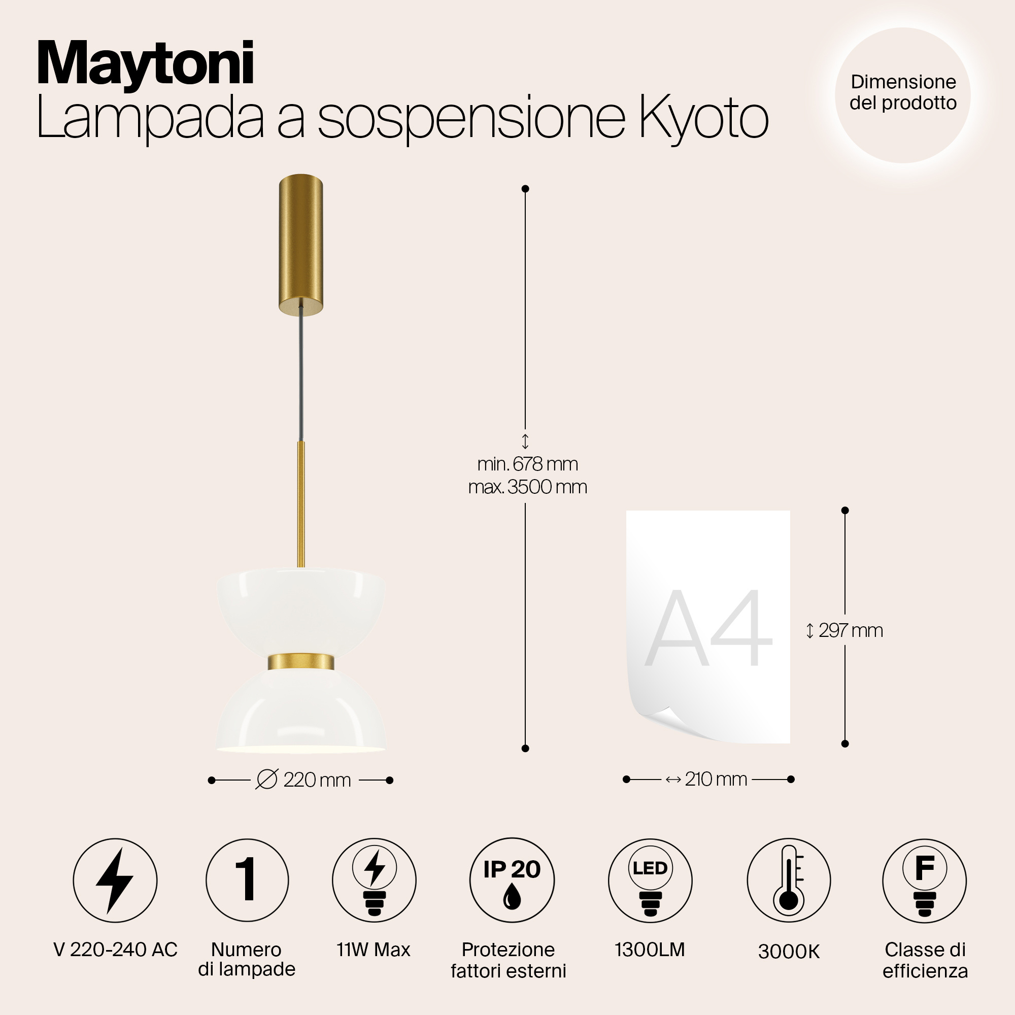 Collezione KyotoL'ILLUMINAZIONE E LO STILE GIAPPONESELampadario a Sospensione Moderno Kyoto 1 Luce G9 28W metallo Oro IP20 H.336,5cm x H.max.336,5cm x D.10cm. Il mat..
