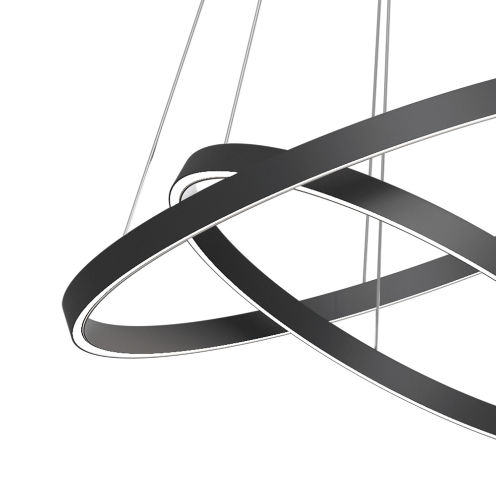 Lampadario A Sospensione Moderno Rim Alluminio Nero 3 Luci Led 115W