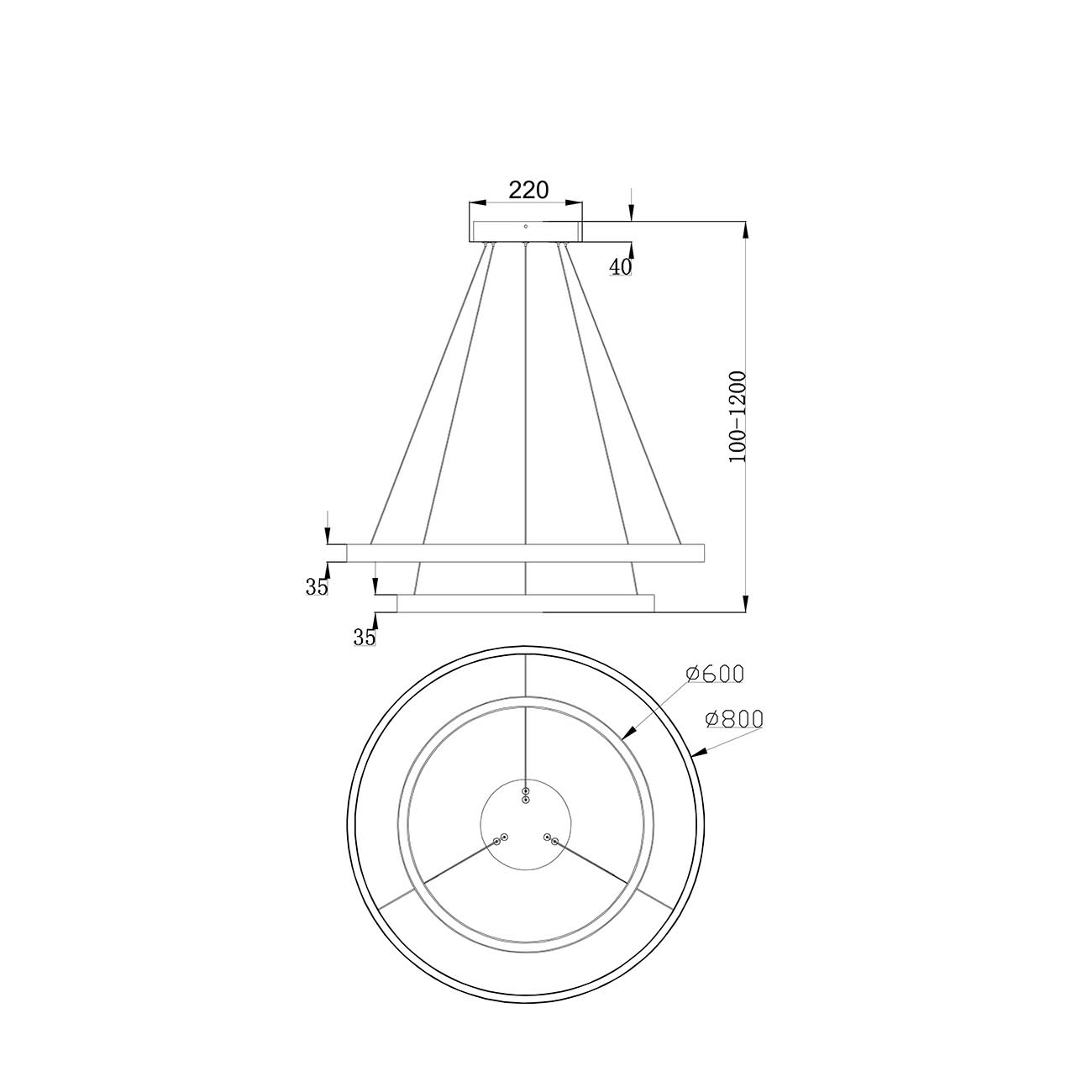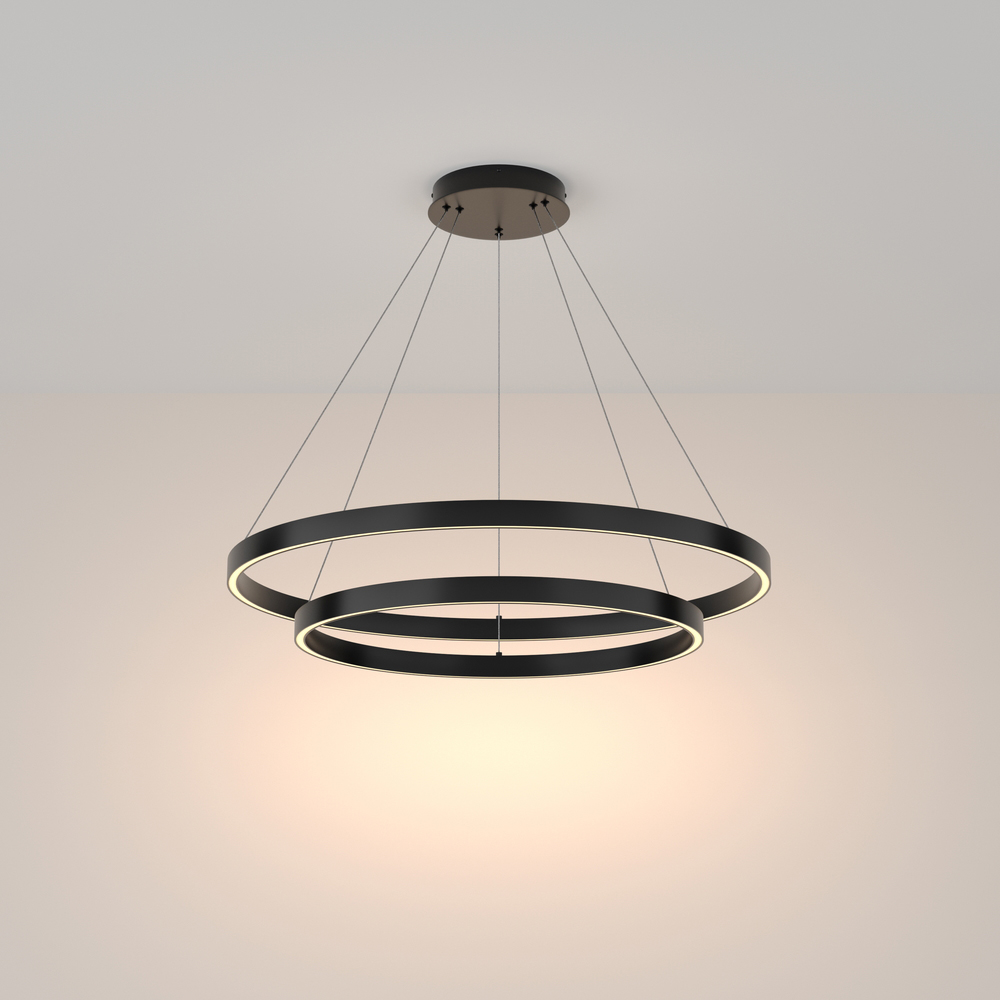 Lampadario A Sospensione Moderno Rim Alluminio Nero 2 Luci Led 88W