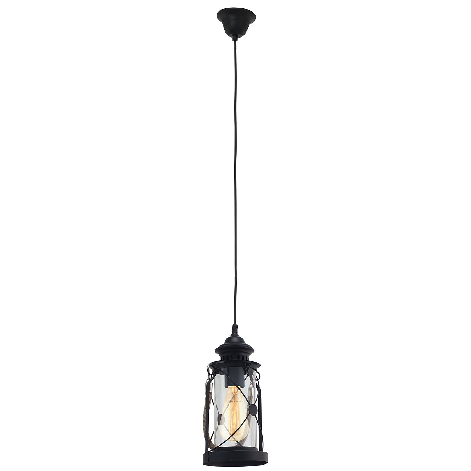 Lampadario A Sospensione Vintage Bradford Acciaio Nero Vetro 1 Luce E27