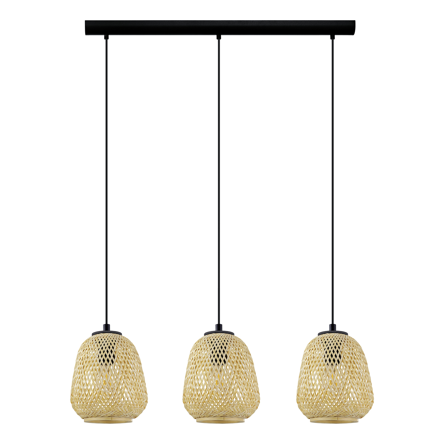 DEMBLEBY - Il lampadario a sospensione monta portalampada E27 3X40W non inclusa - Struttura in acciaio / Finitura nero. Diffusore in legno / Finitura colore naturale 900x200 H1100