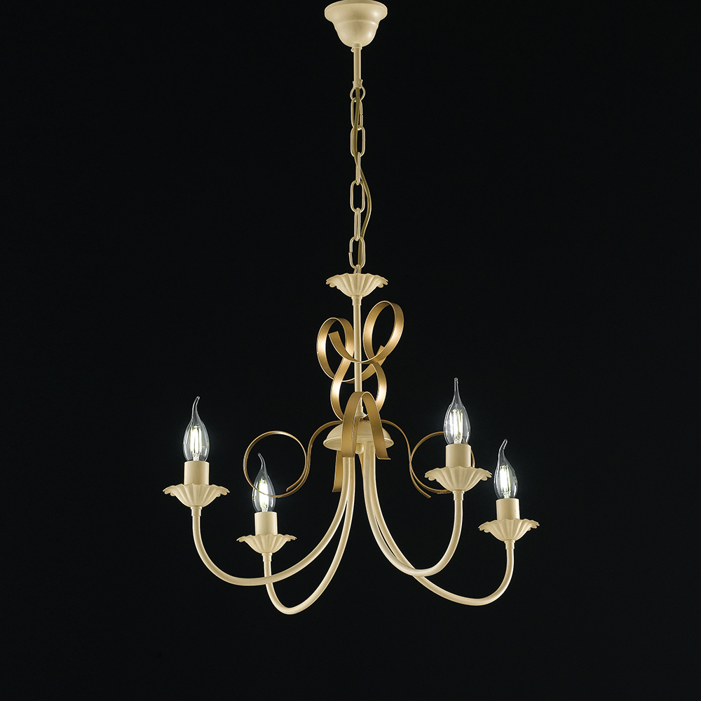 Lampadario Classico 4 Luci Ferro Battuto Avorio E Oro Serie Bandolo