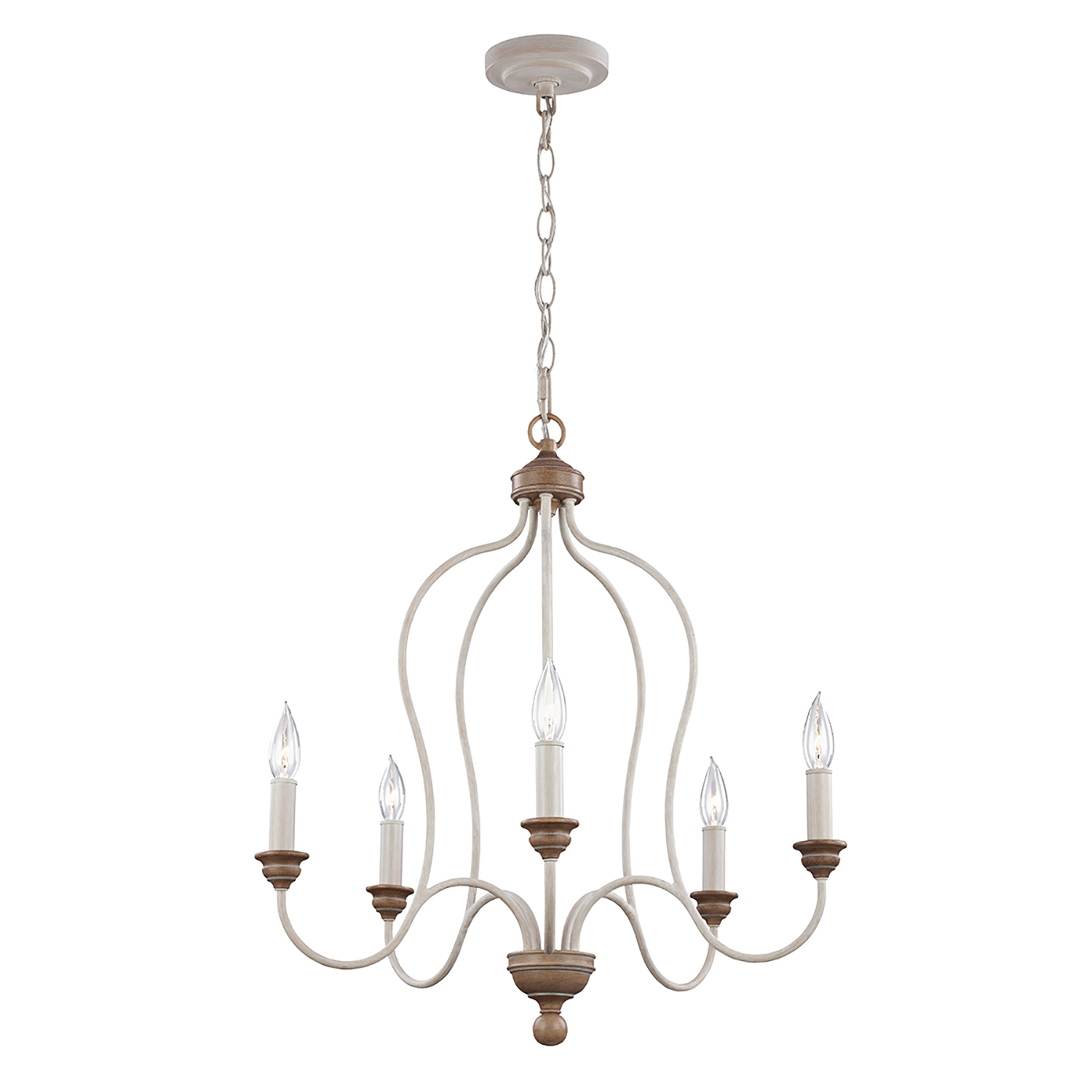 Lampadario a 5 luci . Lo slanciato profilo della collezione Hartsville si ispira alle case coloniche e alla vita di campagna del cuore dell'America coloniale. Con una morbida finitura in gesso slavato abbinata a dettagli color legno di spiaggia, questi modelli sono perfetti in qualsiasi ambiente, dall'arredamento tradizionale a quello casual costiero, e i lampadari possono essere convertiti a soffitto.