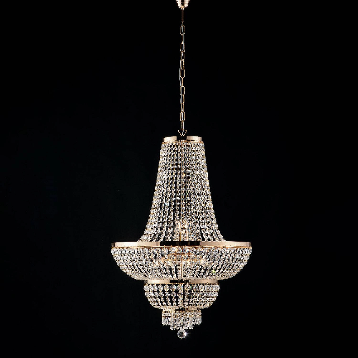 Lampadario Classico Mozart Metallo E Cristallo Oro 10 Luci E14