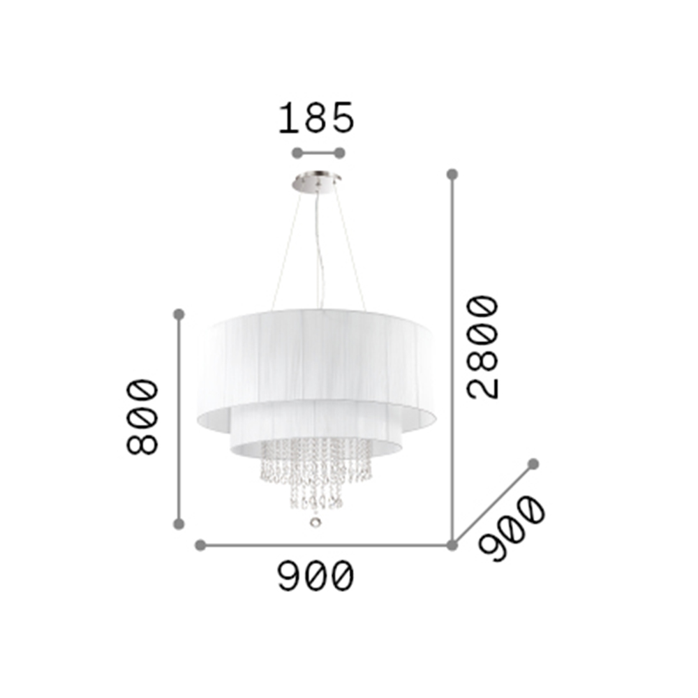 Lampadario Classico Opera Vetro,Tessuto,Cristalloistallo Bianco 10 Luci E27