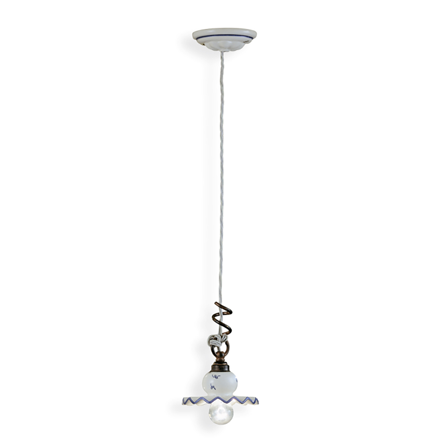 Lampadario Classico Roma Ceramica E Ottone Satinato Decorato Filo Blu 1 Luce E27