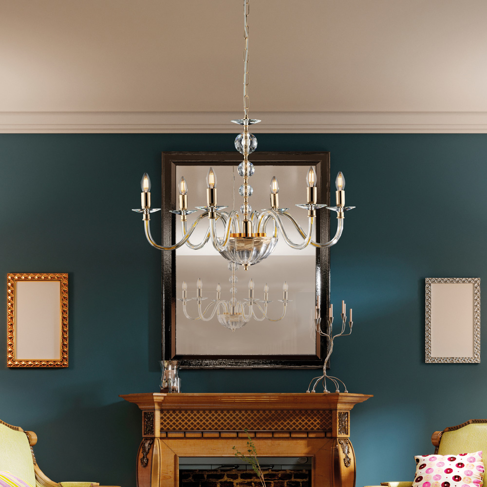 Lampadario Classico Ruben Metallo Oro E Cristallo 8 Luci E14