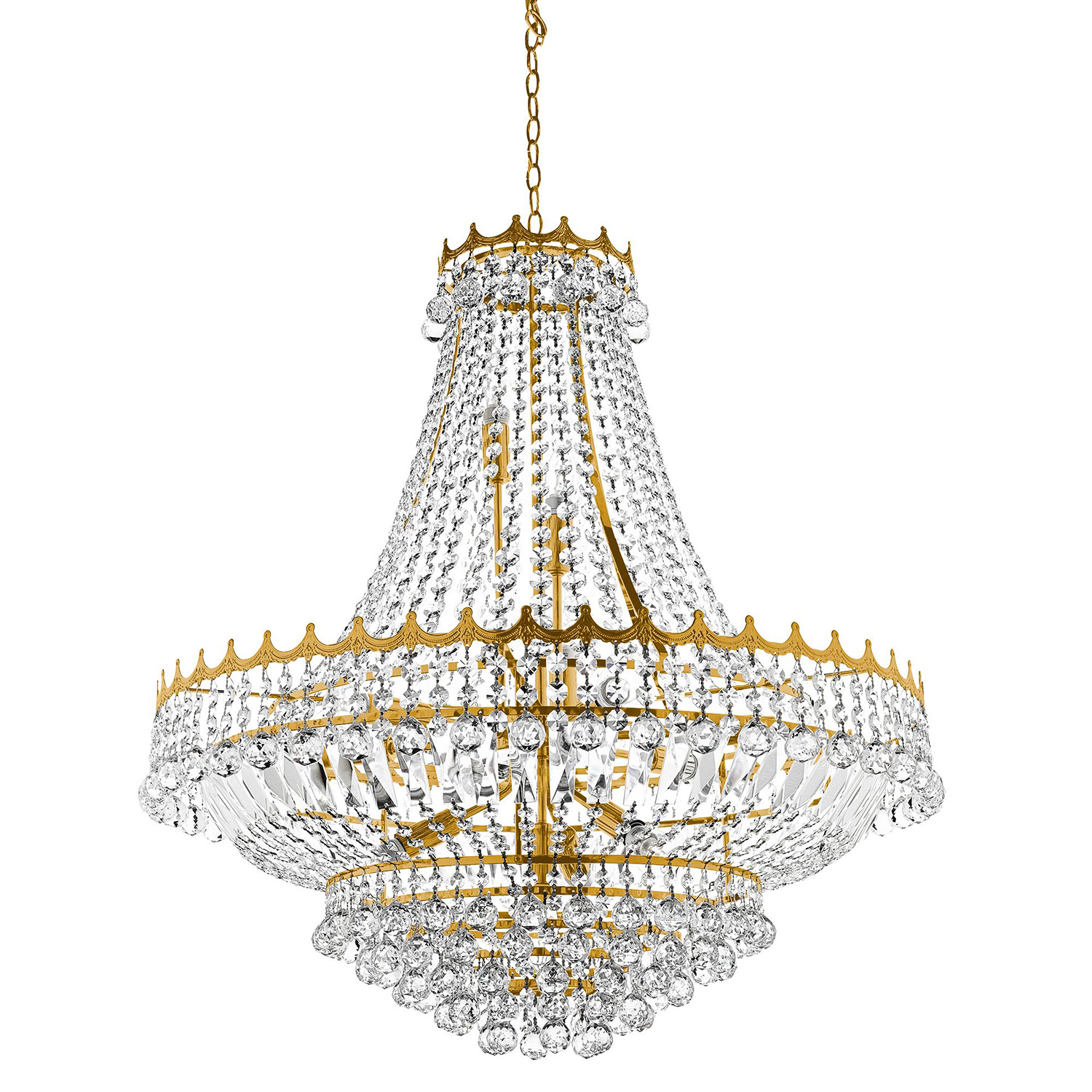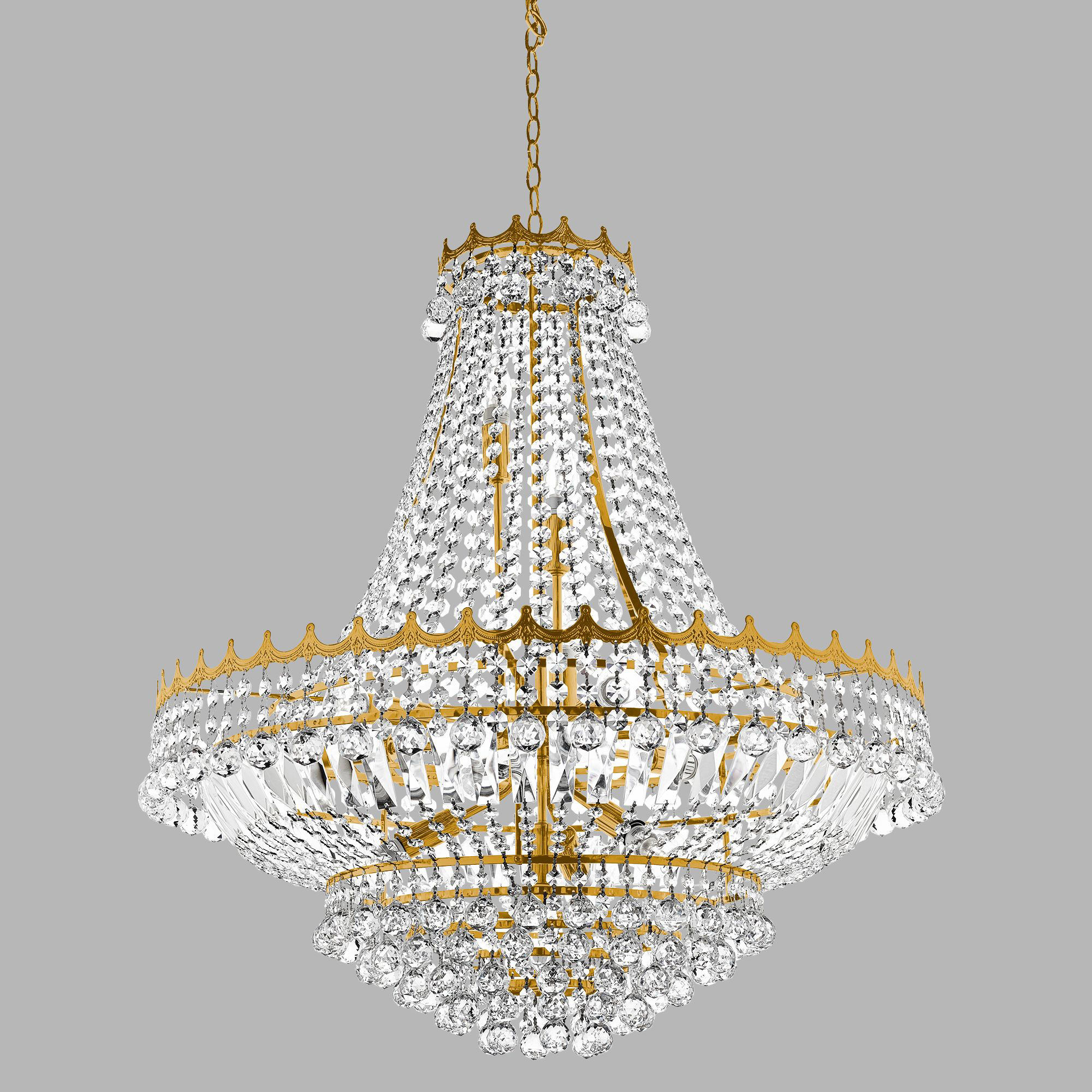 Collezione VersaillesLAMPADA PRINCIPALEQuesto grande lampadario Versailles in oro a 13 luci rifinito con cristallo sembra sbalorditivo in qualsiasi stanza principale..