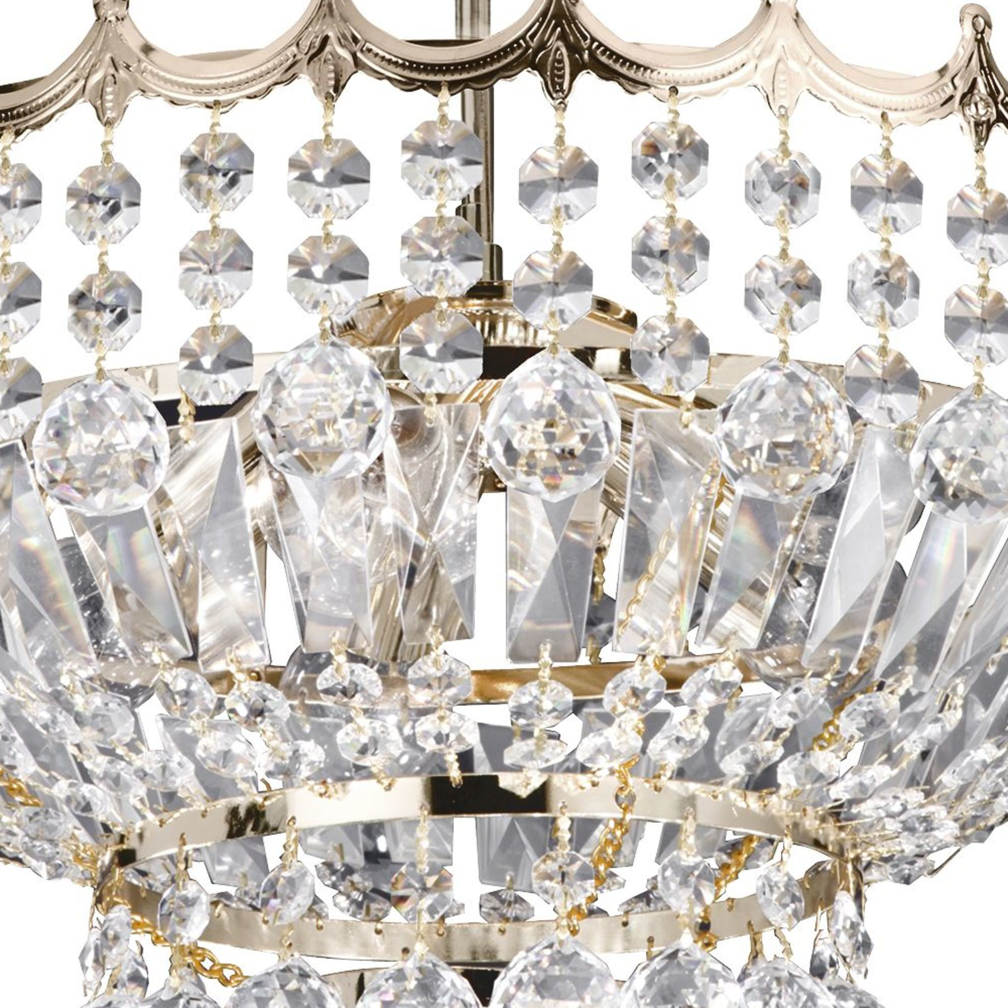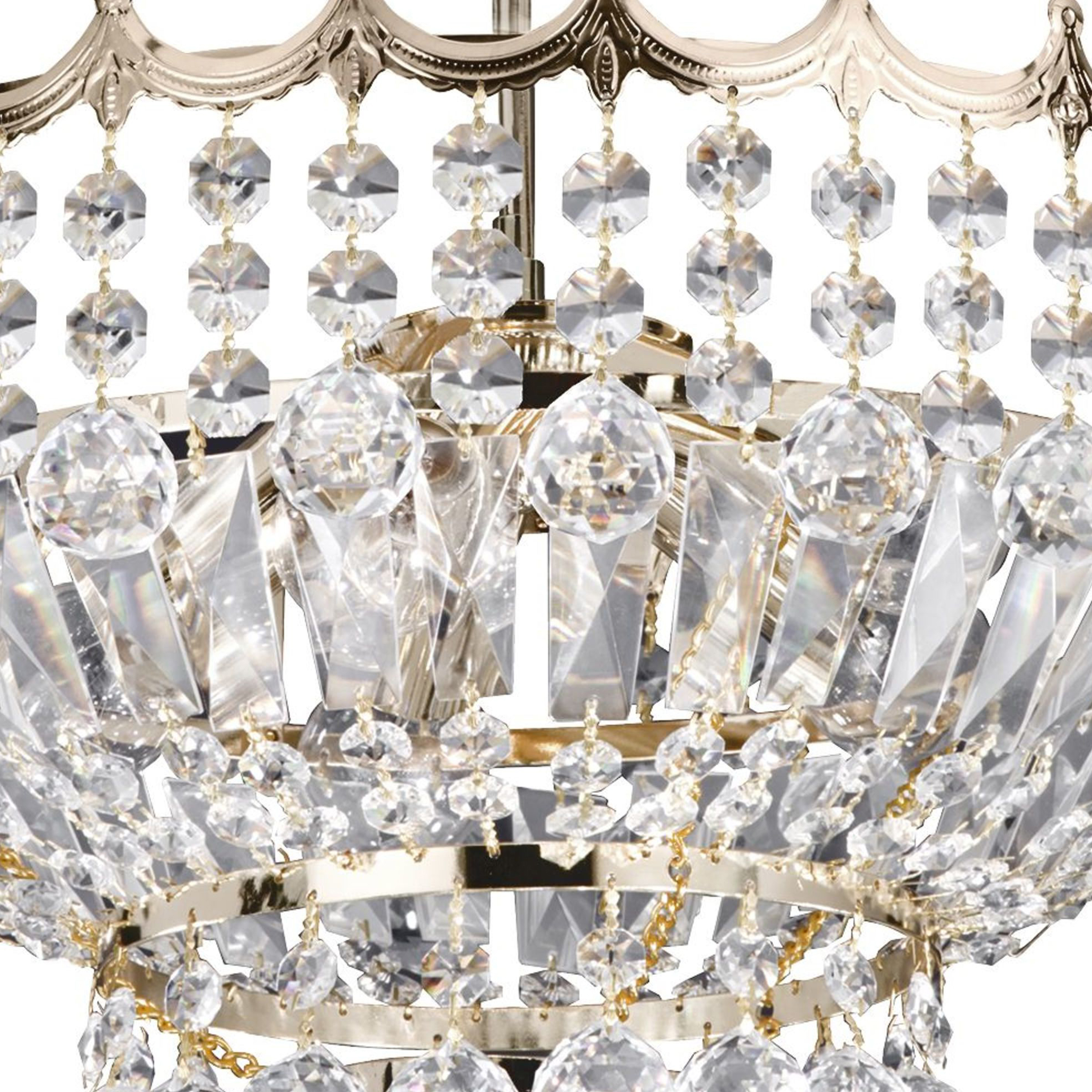 Questo lampadario Versailles a 5 luci in oro con finiture in cristallo sembra sbalorditivo in qualsiasi stanza principale o ingresso. Il lampadario tradizionale è ricco di intricati cristalli tagliati attorno e sotto una bellissima corona rifinita in oro. Sembra fantastico quando è illuminato di notte e fa una dichiarazione audace in ogni casa.
