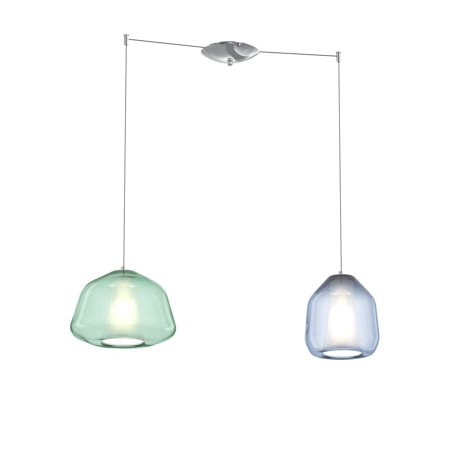 Collezione DOUBLE SKINLAMPADA DALLA DOPPIA ANIMASospensione 1 luce composta da una struttura in metallo color cromo e un diffusore in vetro pirex soffiato colore ver..