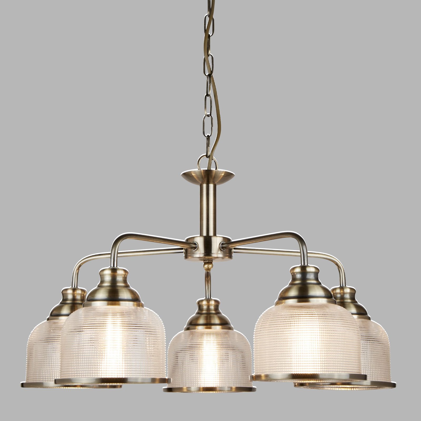 La sospensione a 5 luci della gamma Bistro II è un modo semplice per elevare e illuminare magnificamente qualsiasi casa. Questo raccordo in ottone anticato è ideale per la cucina o la sala da pranzo di una casa in stile tradizionale e classico. Questo attraente ciondolo da 5 luci è realizzato utilizzando vetro stile olofano e metallo ottone antico per creare un tocco vintage. Regolabile in altezza, questa sospensione può adattarsi a qualsiasi altezza del soffitto.