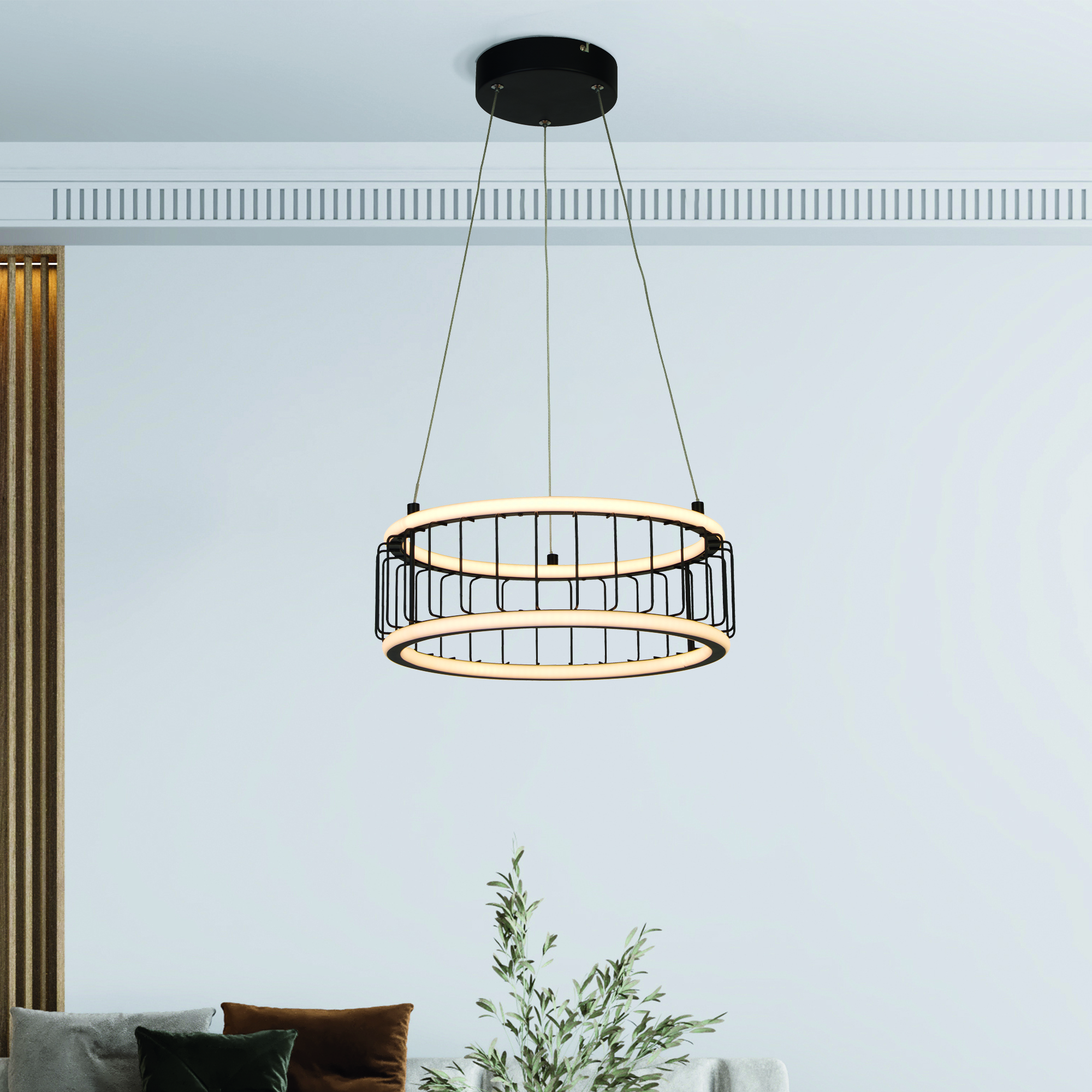 Lampadario Contemporaneo Circolo Acciaio Nero Alluminio Bianco Led 46,4W 3000K