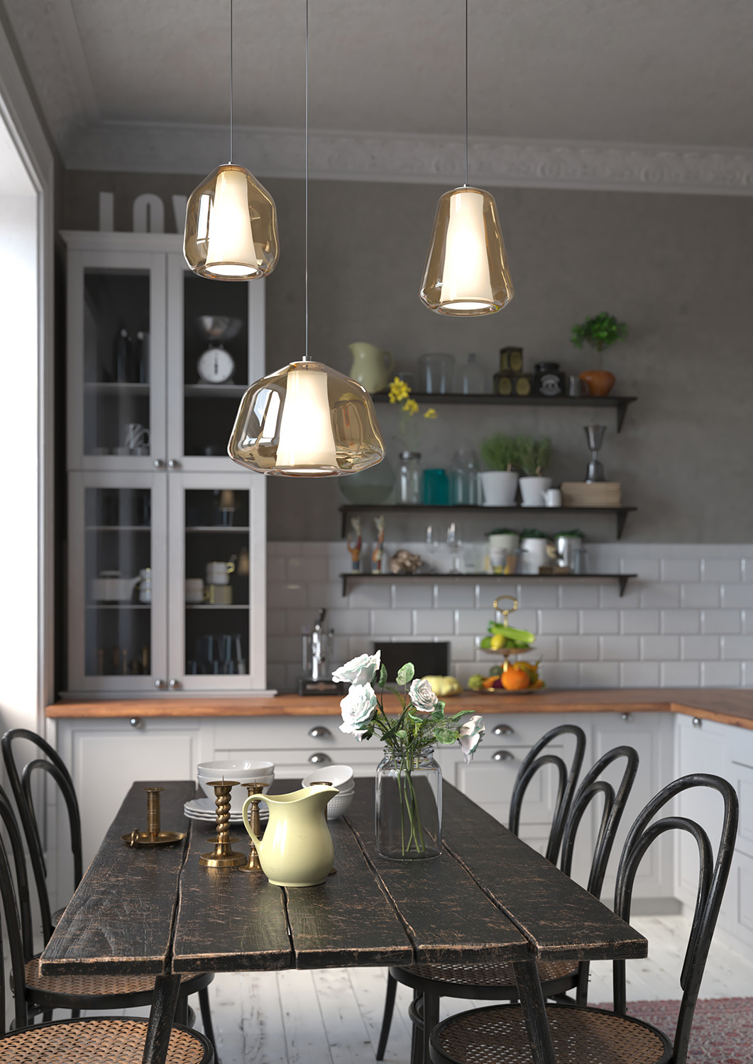 Collezione di lampade a sospensione composta da uno o più diffusori in vetro pirex soffiato regolabili in altezza. Ogni elemento è disponibile in 3 forme differenti (Alpha, Beta e Gamma) ed è caratterizzato da un doppio vetro, bianco all'interno e in diverse colorazioni all'esterno. La serie viene completata da una lampada da appoggio, una da plafone e da una lampada da parete. Le finiture dei vetri sono trasparente, verde, fumè, blu e ambra. Le strutture dei rosoni sono disponibili nelle finiture cromo, bianco e ottone satinato, mentre le finiture del portalampada sono unicamente di colore bianco. Questo articolo è disponibile in diverse finiture e/o dimensioni. E' possibile indicarlo nell'apposito campo NOTE presente in conclusione di ordine oppure contattarci dopo aver effettuato l'ordine.