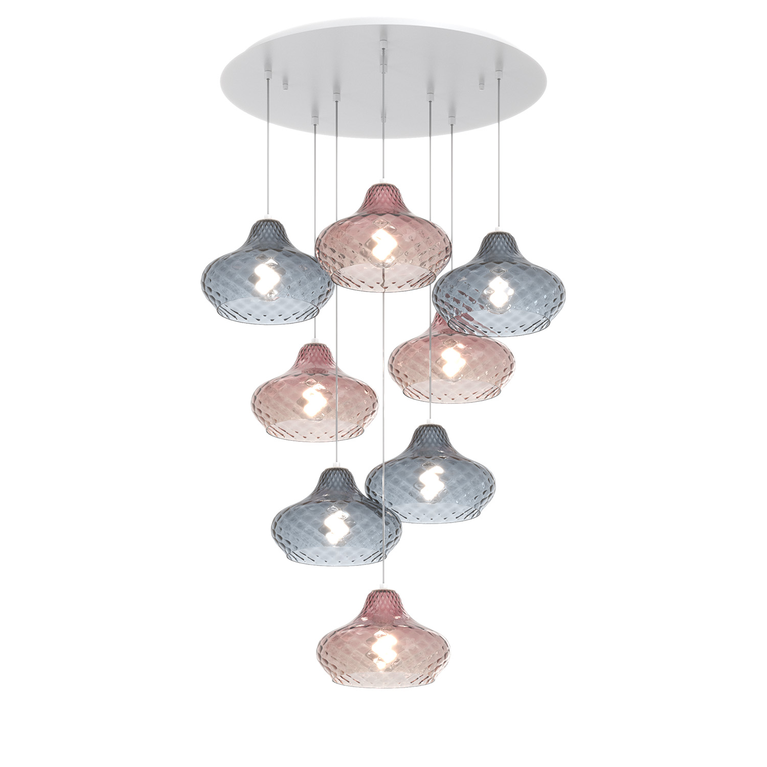 Lampadario Contemporaneo Dress Metallo Bianco Vetro Zaffiro-Ruggine 8 Luci E27