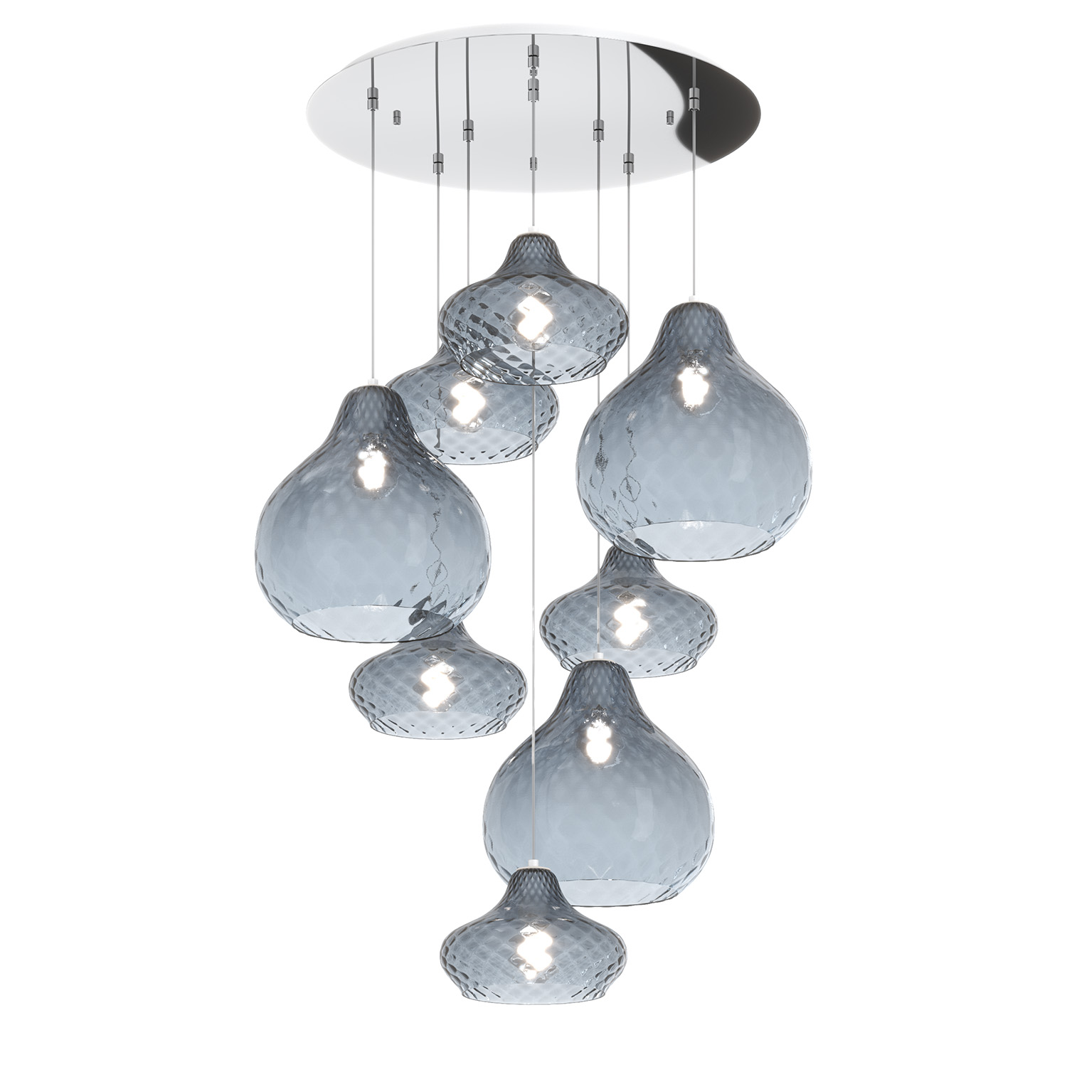 Lampadario Contemporaneo Dress Metallo Cromo Vetro Blu 8 Luci E27