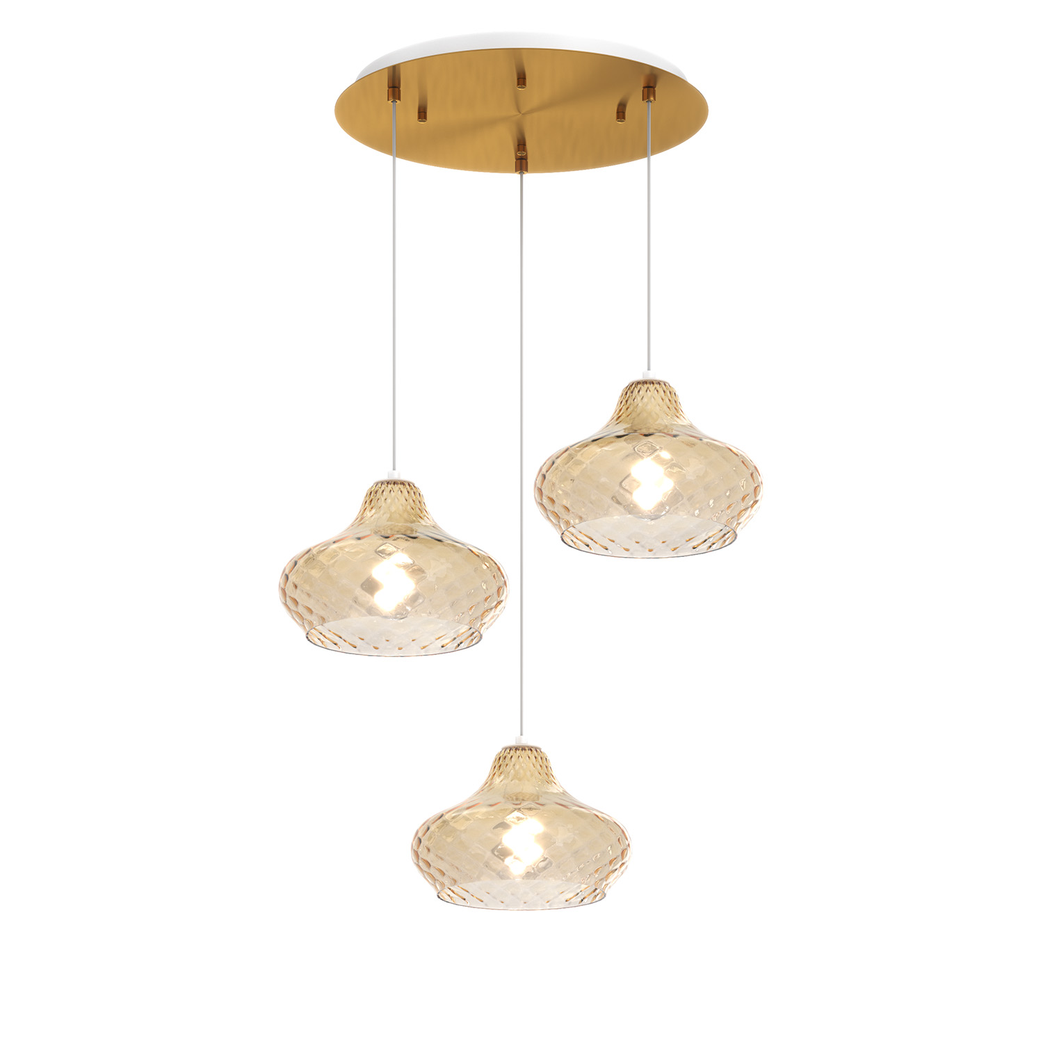 Lampadario Contemporaneo Dress Metallo Ottone Vetro Ambra 3 Luci E27